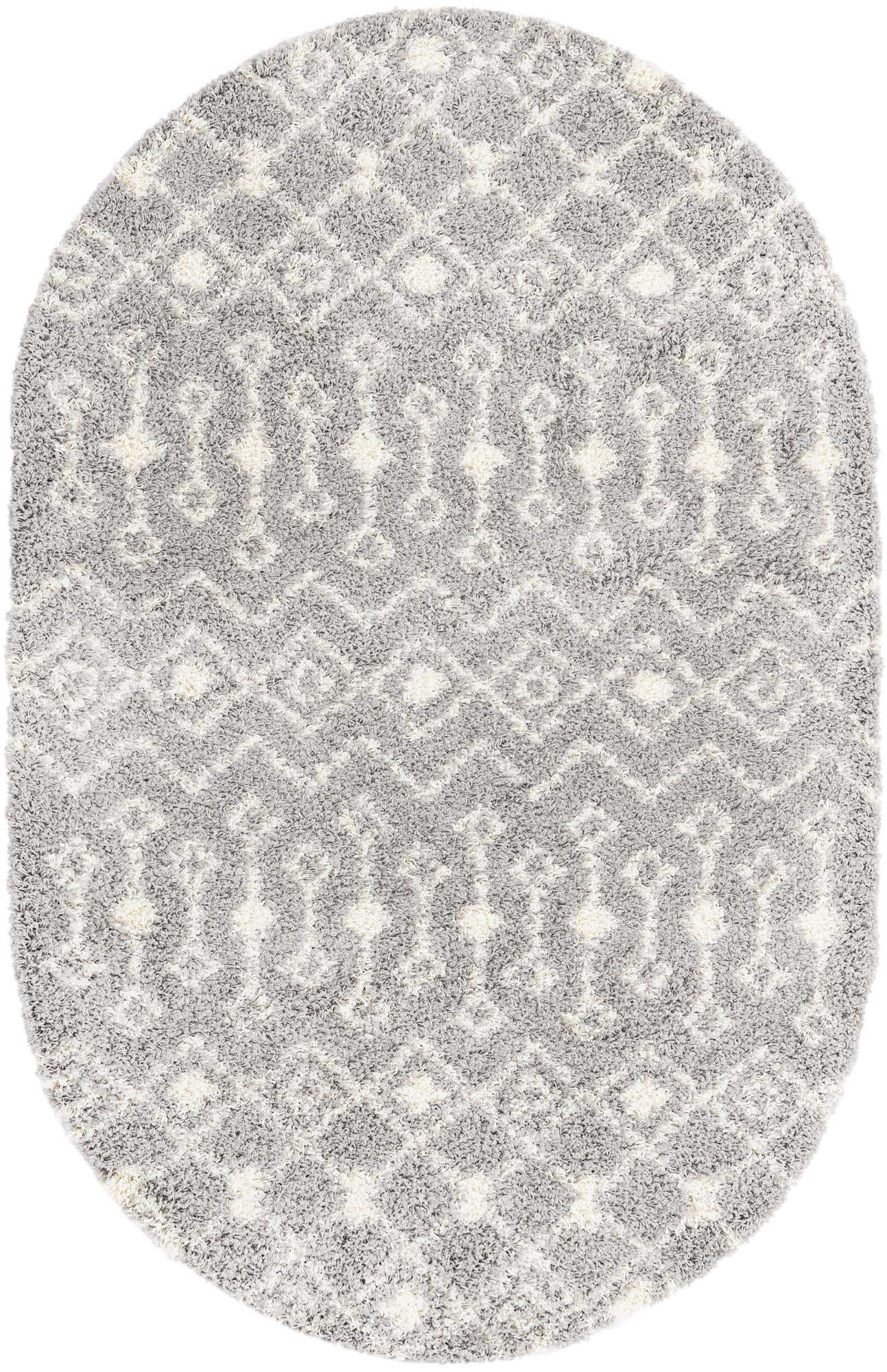 Gray 5' 3 x 8' Moroccan Trellis Shag Oval Area Rug Thick So...