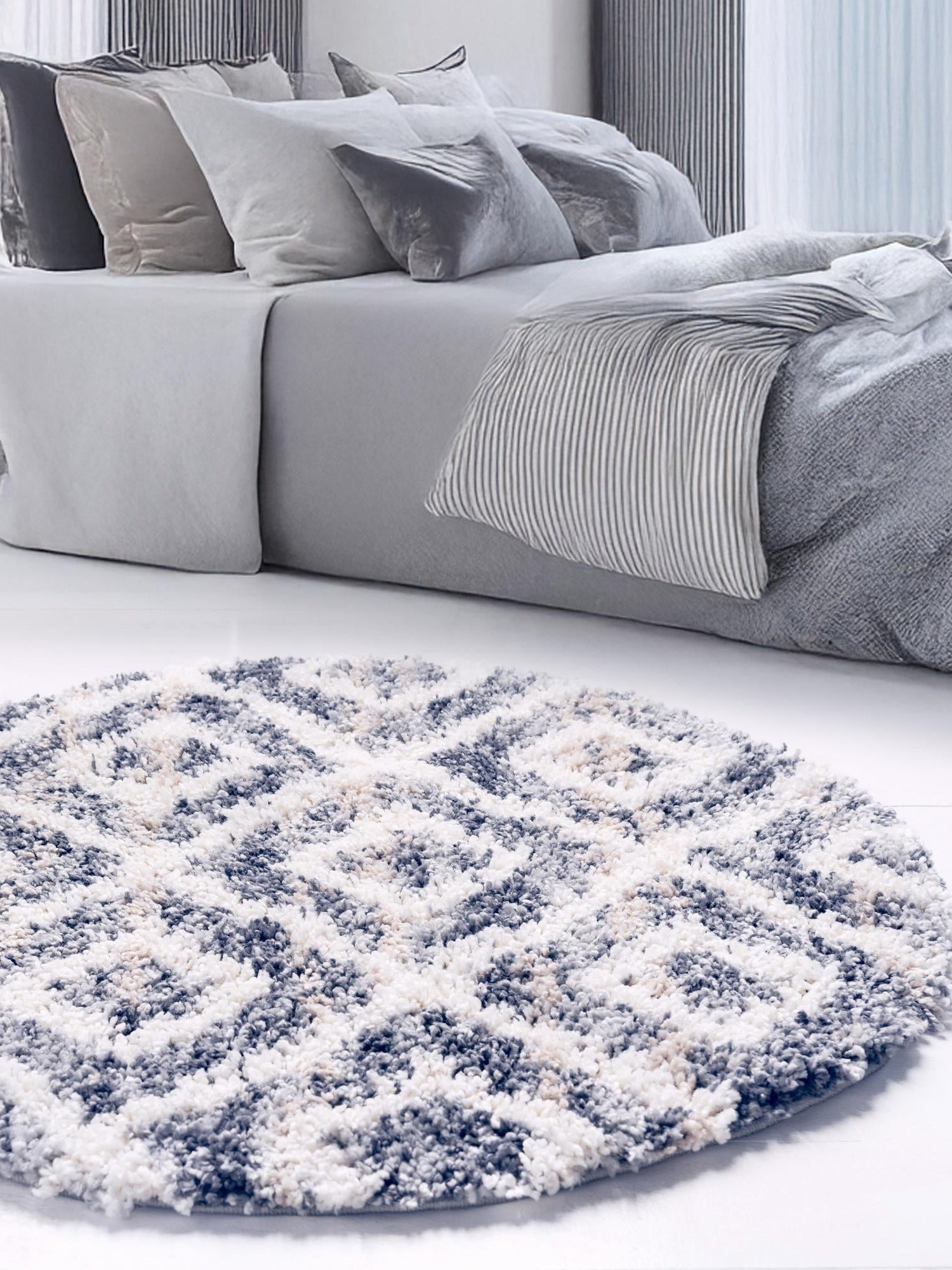 Gray 5' x 5' Hygge Shag Round Area Rug Thick Soft Touch Fluffy & Plush Shaggy Pile 100% Polypropylene With Jute Backing Modern Carpet
