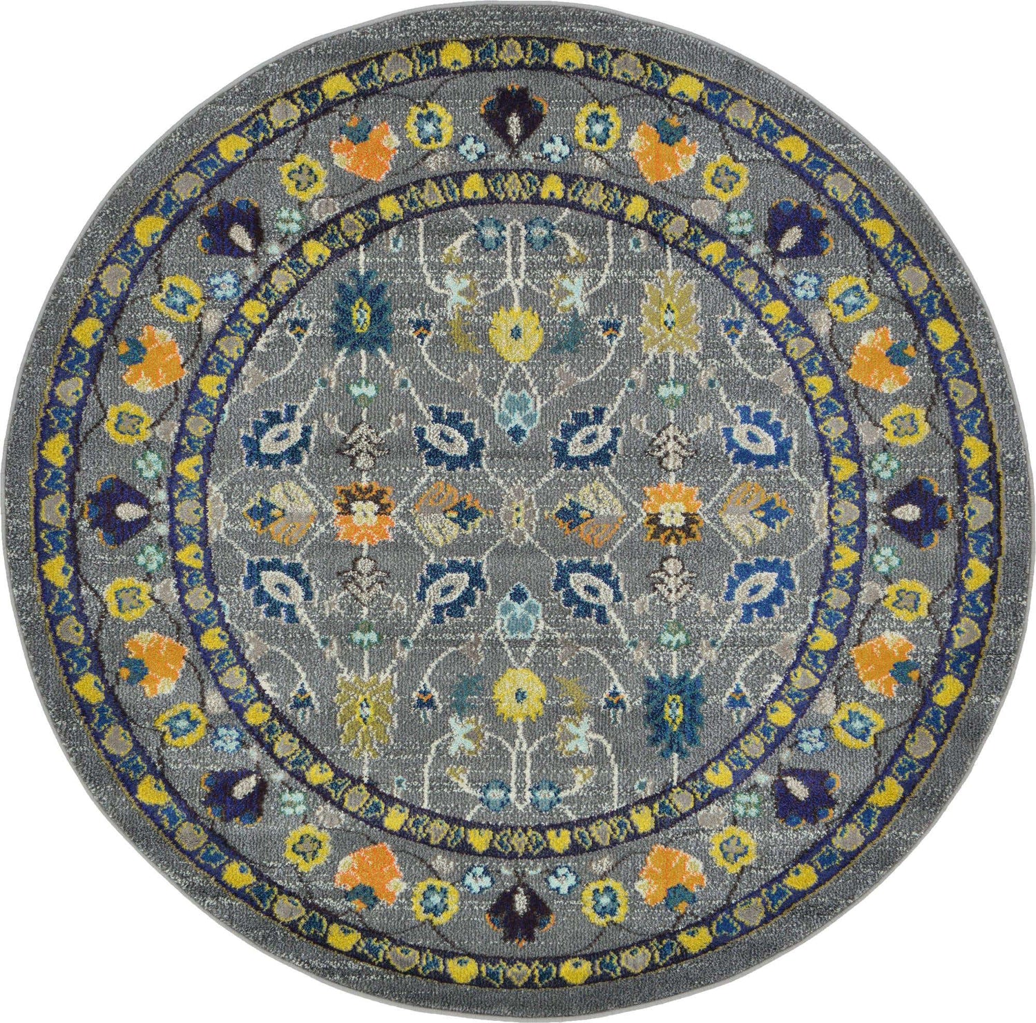 Gray 6' 1 x 6' 1 Medici Round Area Rug 100% Polypropylene Traditional Vintage Classic Carpet for Home Interior Design Decor