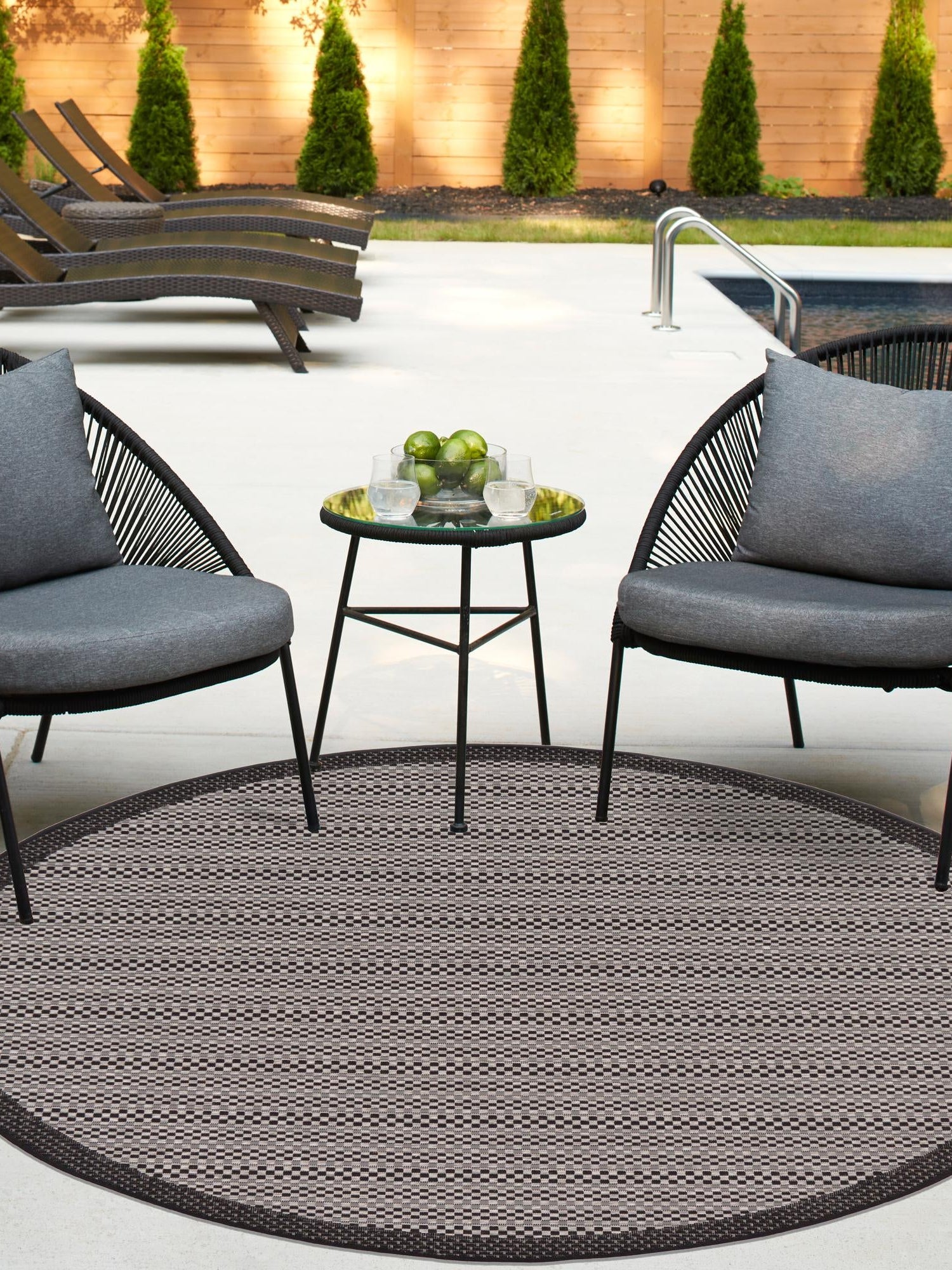 Gray 6' 1 x 6' 1 Outdoor Border Round Area Rug Weather Resistant for Patio, Deck, Terrace, Balcony, Porch