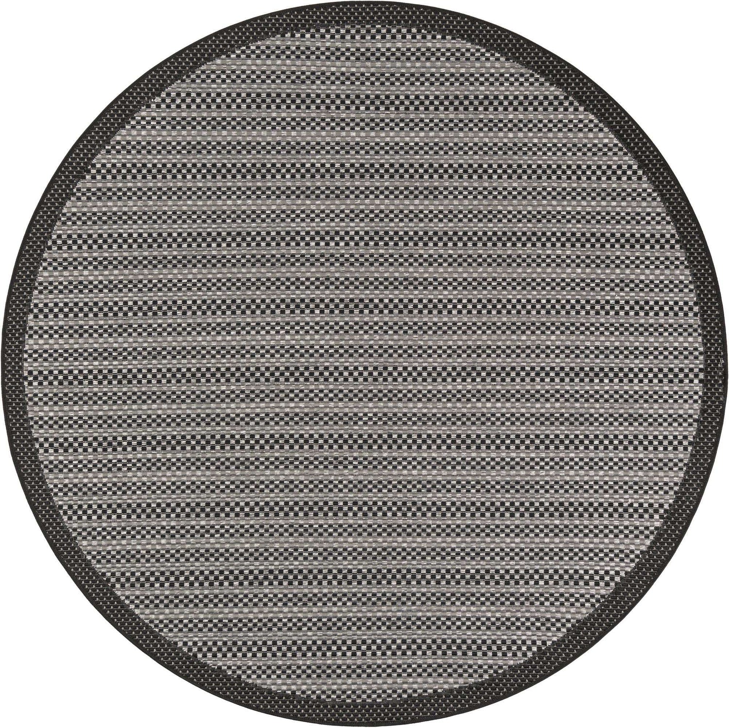 Gray 6' 1 x 6' 1 Outdoor Border Round Area Rug Weather Resi...