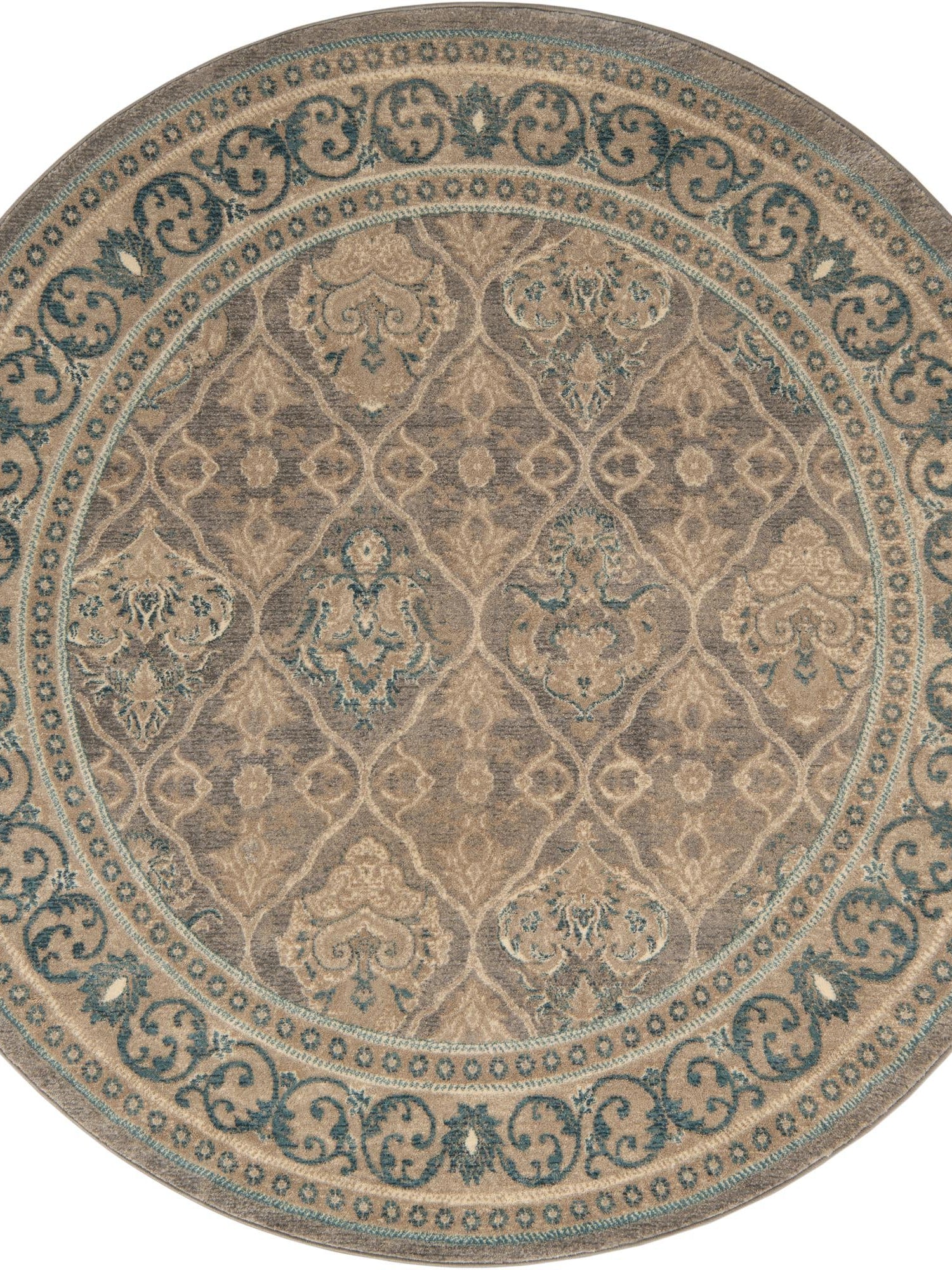 Gray 6' 1 x 6' 1 Salzburg Round Area Rug Stain Resistant Easy Clean Traditional Classic Design Durable Carpet for Affordable Interior Home Decorating