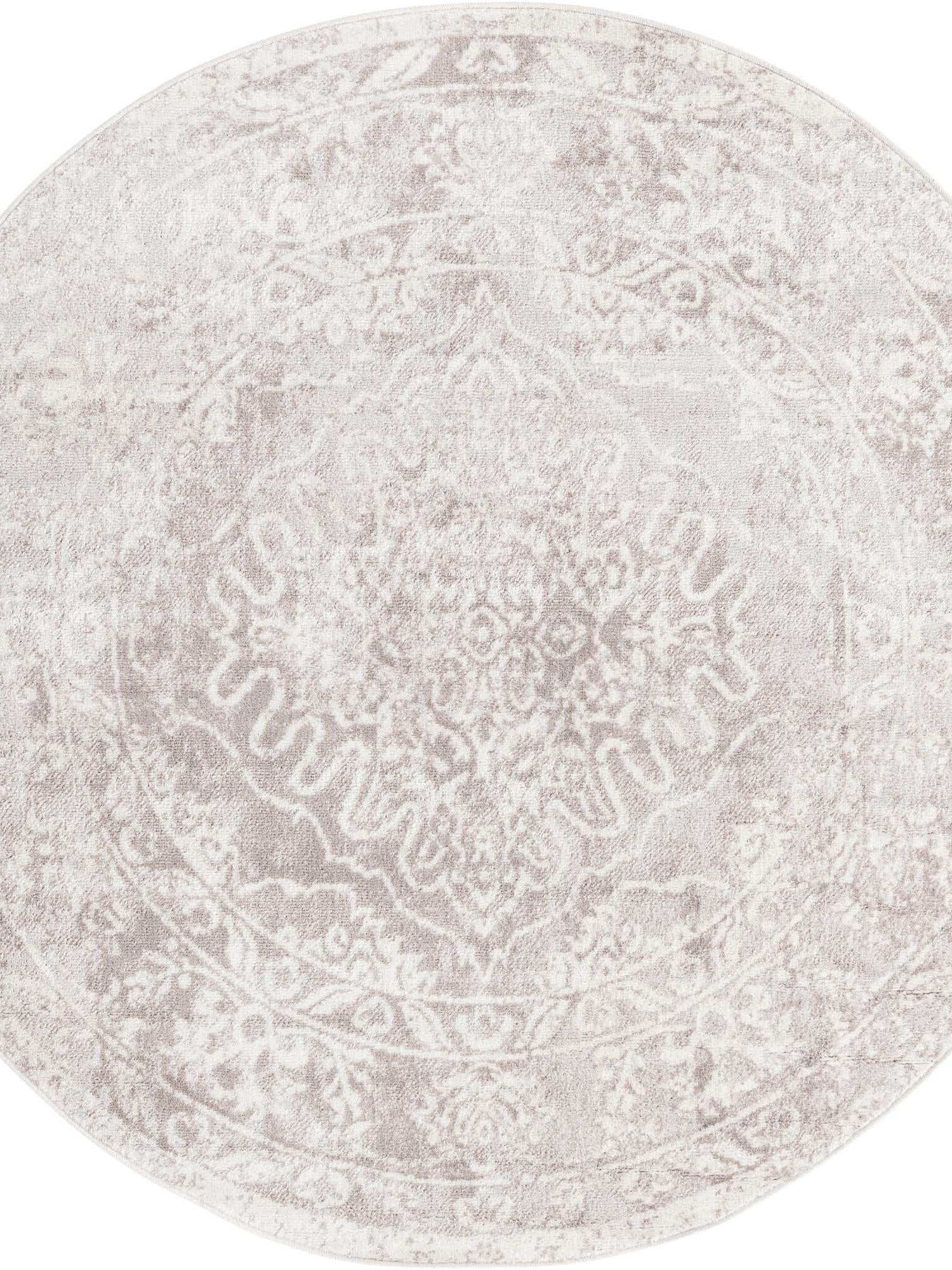 Washable Gray 2' x 2' Timeless Round Area Rug Easy to Clean Stain Resistant & Durable