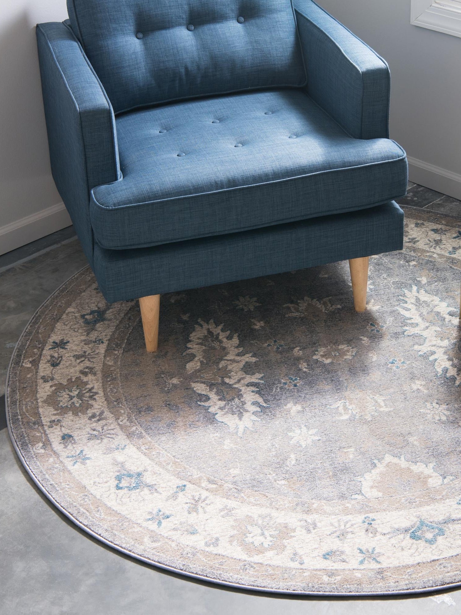 Washable Blue 5' x 5' Timeless Round Area Rug Easy to Clean Stain Resistant & Durable