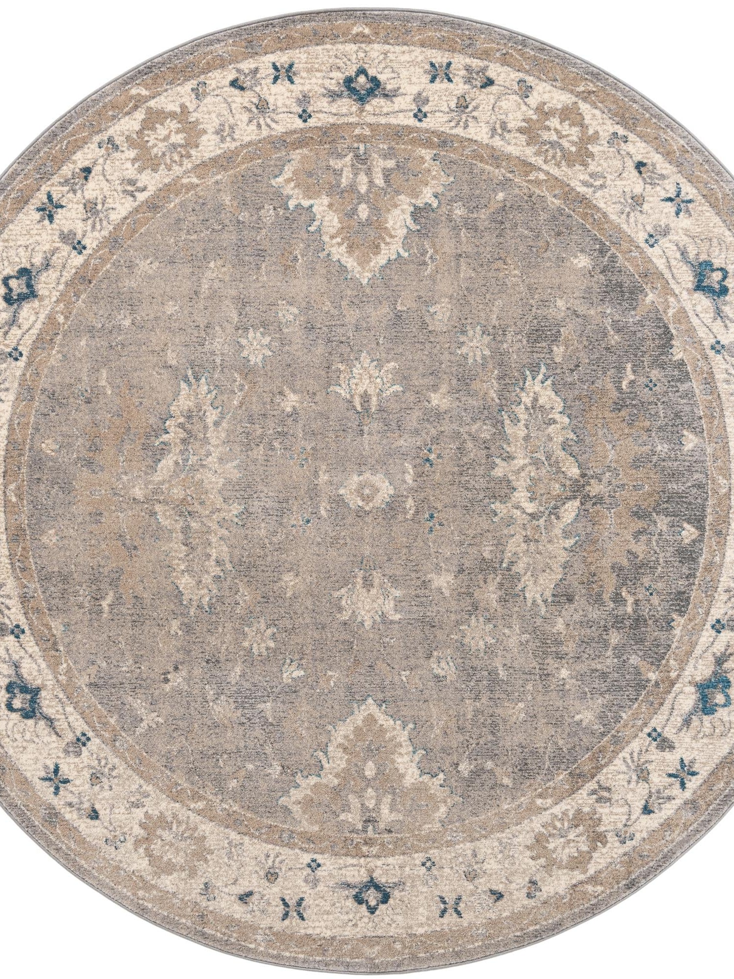 Gray 7' 3 x 7' 3 Salzburg Round Area Rug Stain Resistant Easy Clean Traditional Classic Design Durable Carpet for Affordable Interior Home Decorating