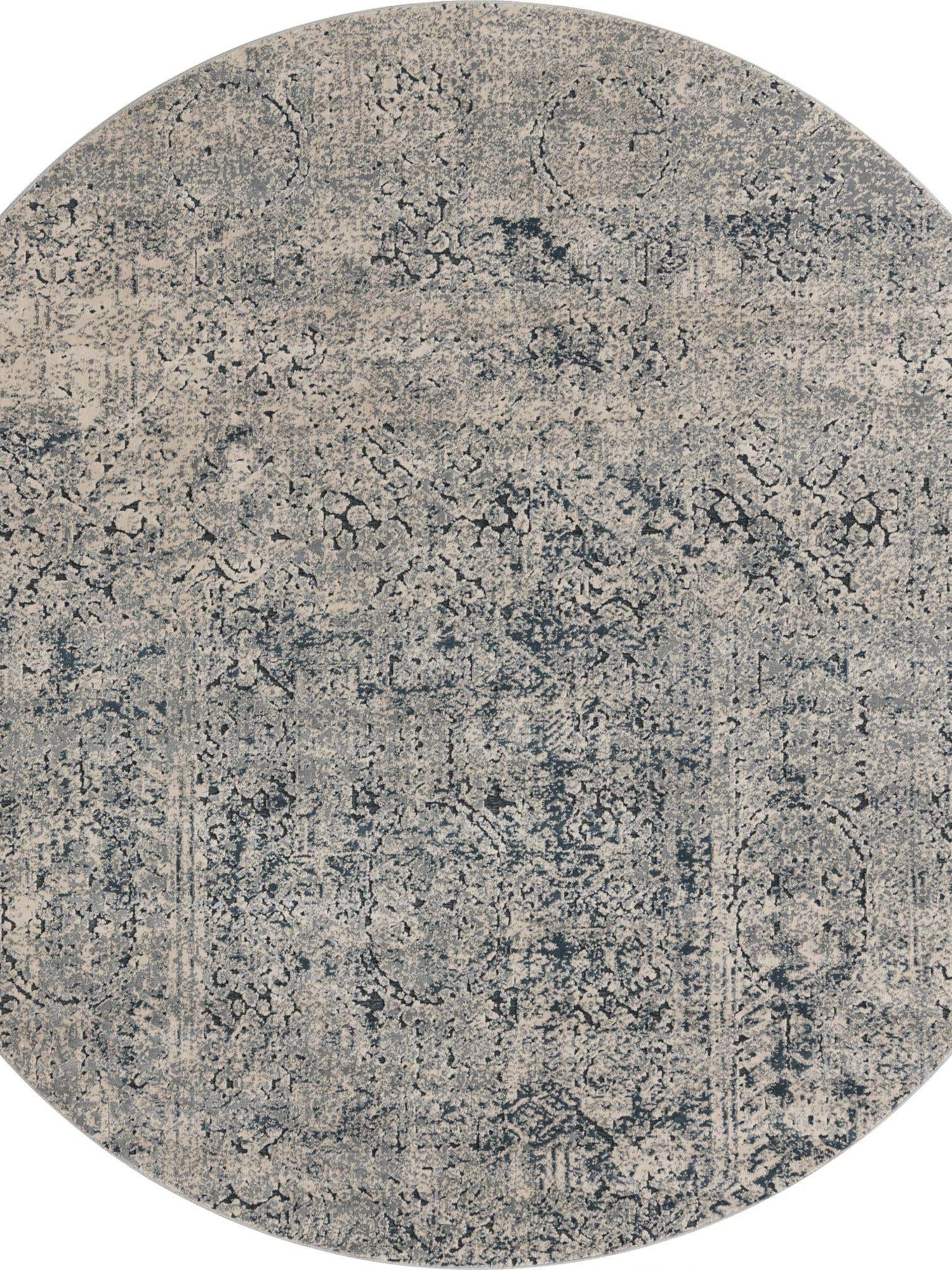 Gray 7' 1 x 7' 1 Chateau Round Area Rug 85% Polypropylene & 15% Chenille With Cotton Backing Traditional Vintage Distressed Carpet for Classical Interior Design Decorating