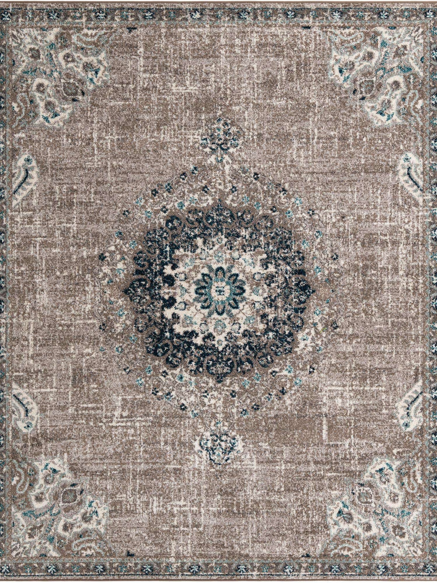 Washable Gray Blue 2' x 3' 1 Renaissance Rectangle Area Rug Easy to Clean Stain Resistant & Durable