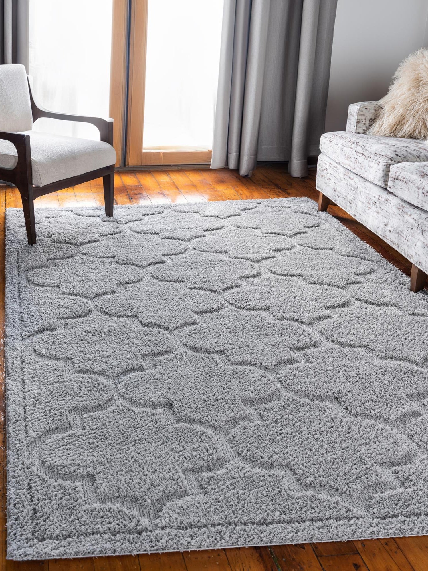 Gray 8' x 10' Trellis Shag Rectangle Area Rug Thick Soft Touch Fluffy & Plush Shaggy Pile