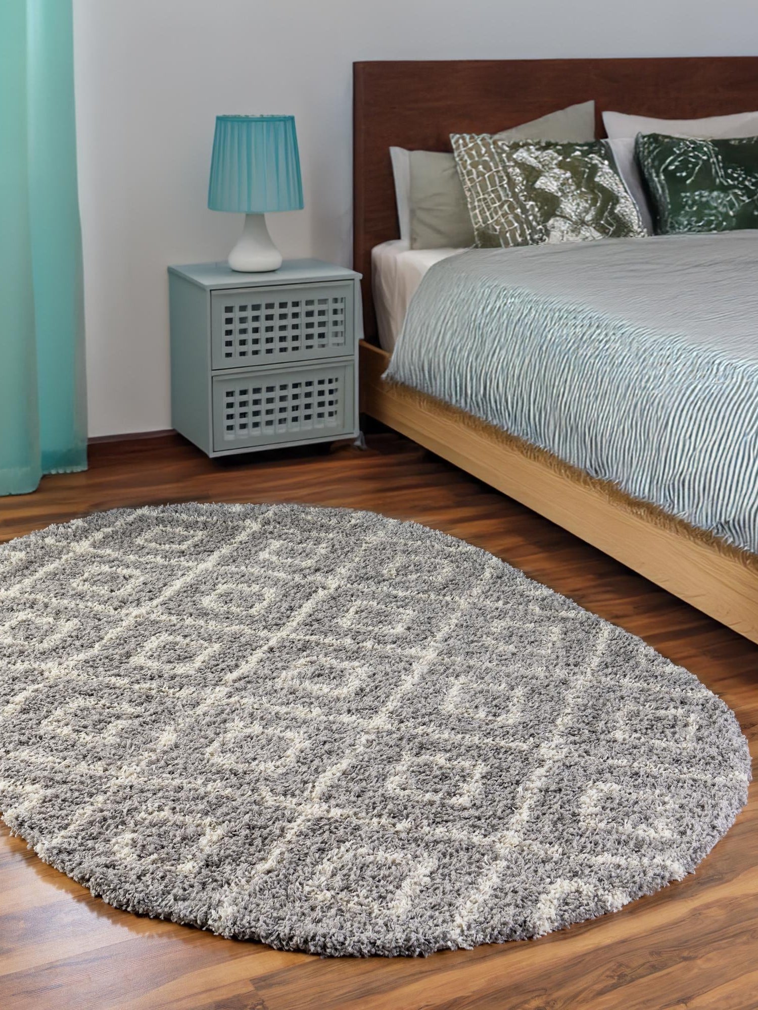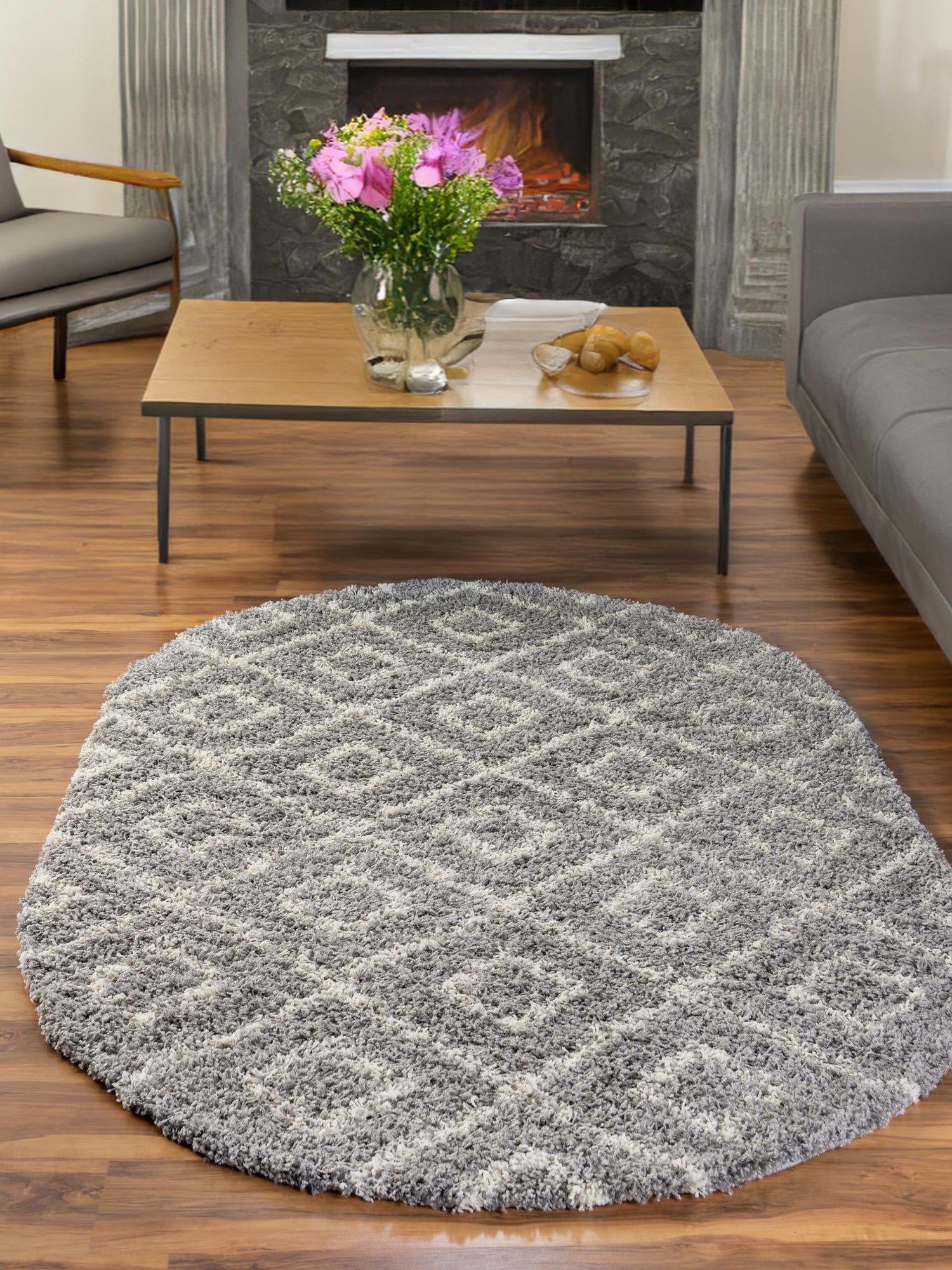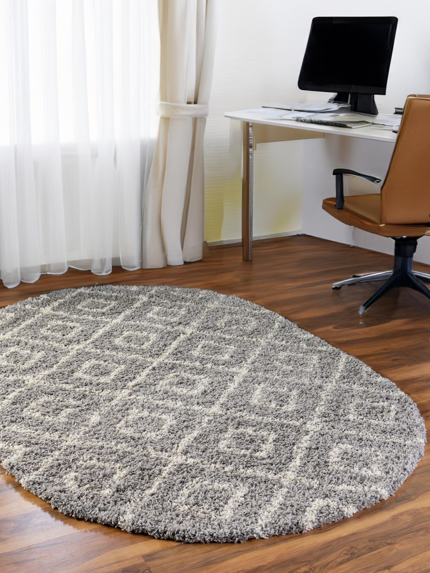 Gray 7' 10 x 10' Trellis Shag Oval Area Rug Thick Soft Touch Fluffy & Plush Shaggy Pile