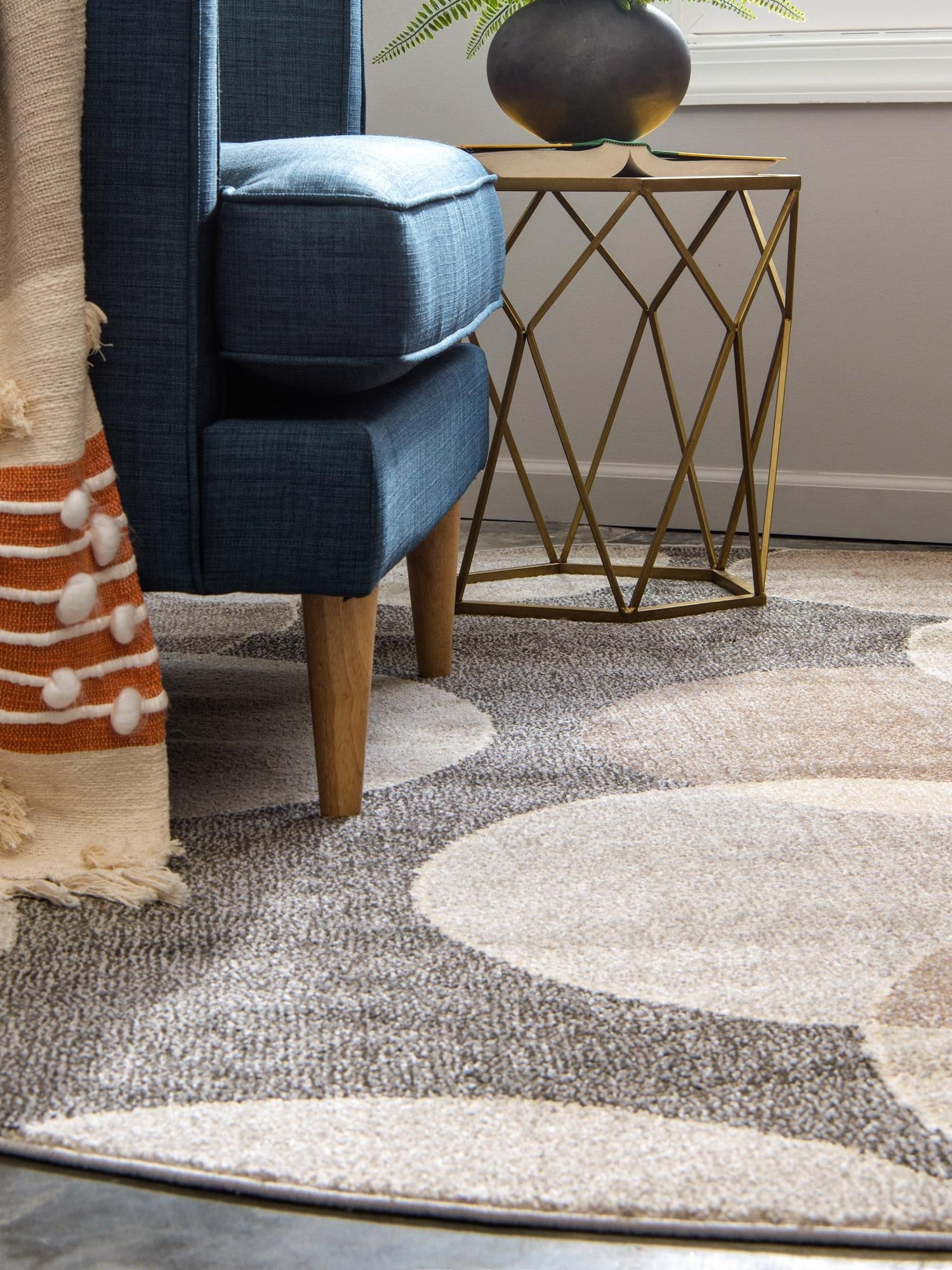 Gray 8' x 8' Chromatic Round Area Rug 100% Polypropylene With Cotton Backing Abstract Modern Colorful Carpet Mat for Home Decor & Interior Design
