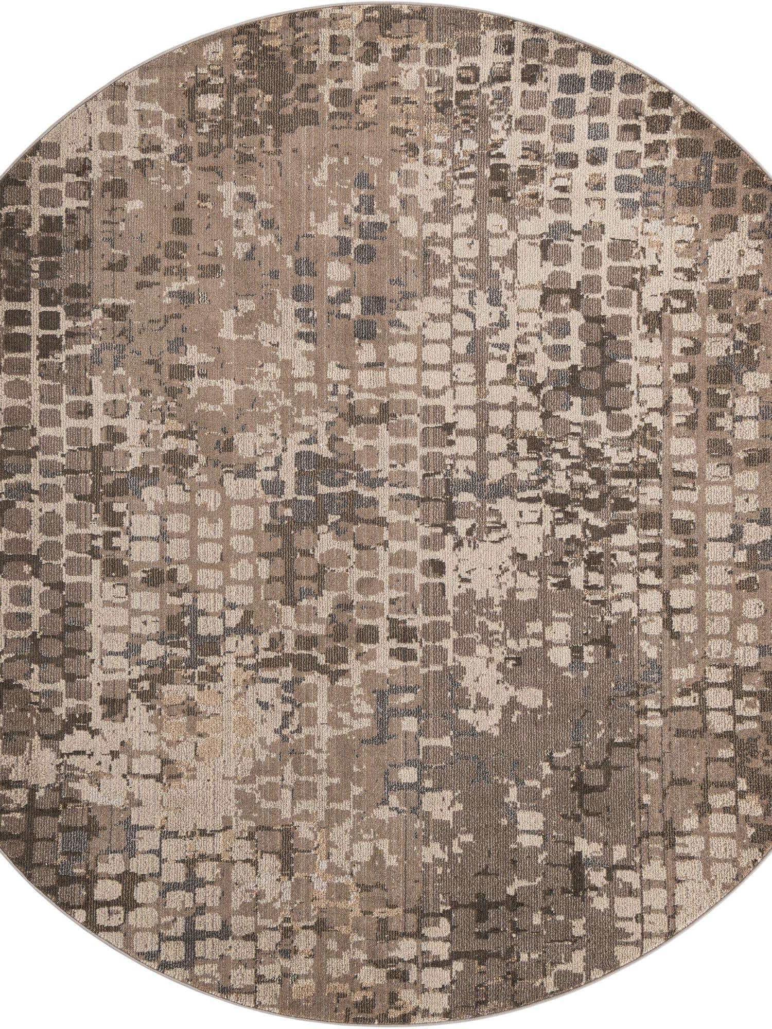 Gray 8' x 8' Chromatic Round Area Rug 100% Polypropylene With Cotton Backing Abstract Modern Colorful Carpet Mat for Home Decor & Interior Design