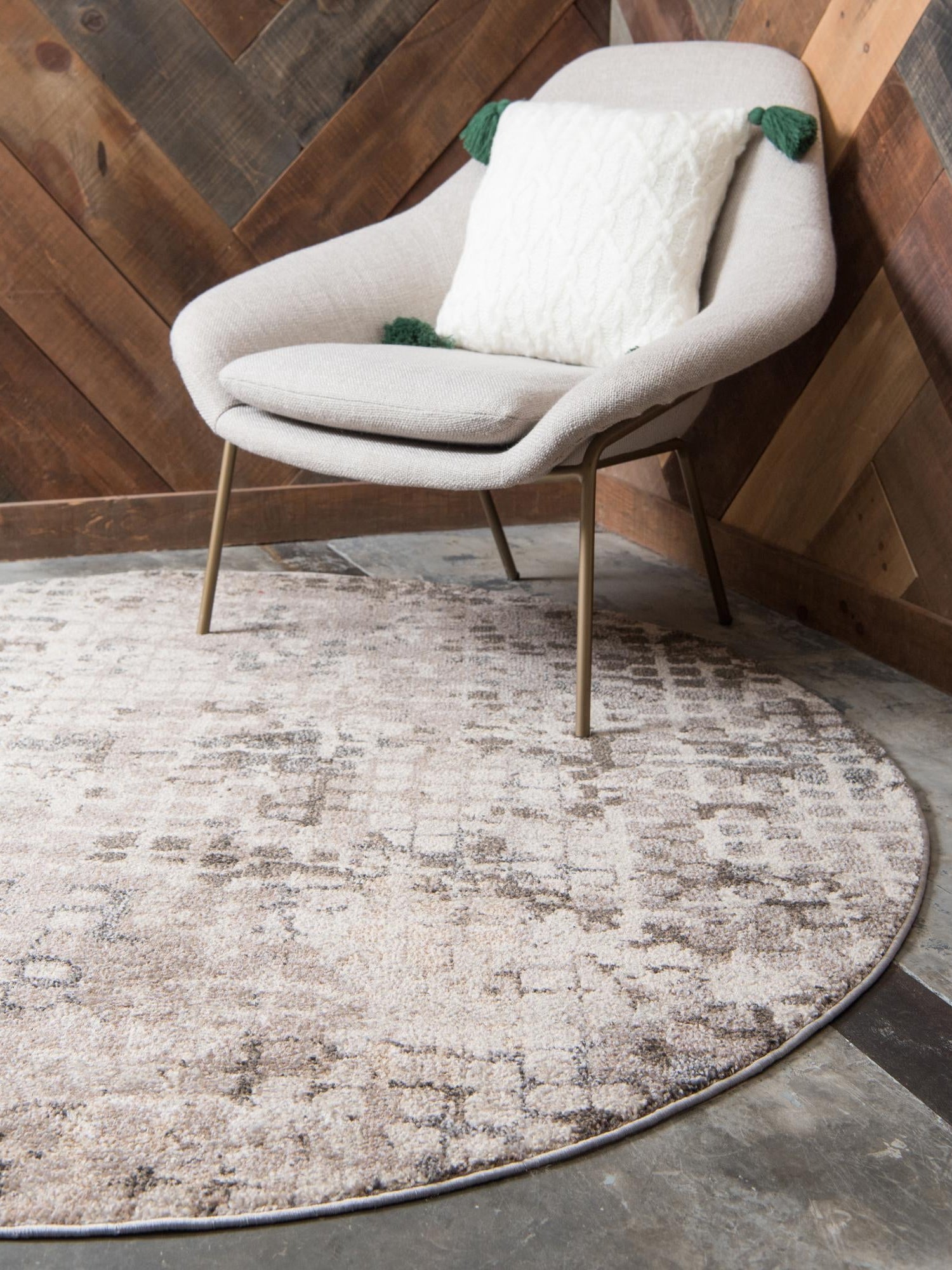 Washable Gray 2' x 2' Timeless Round Area Rug Easy to Clean Stain Resistant & Durable