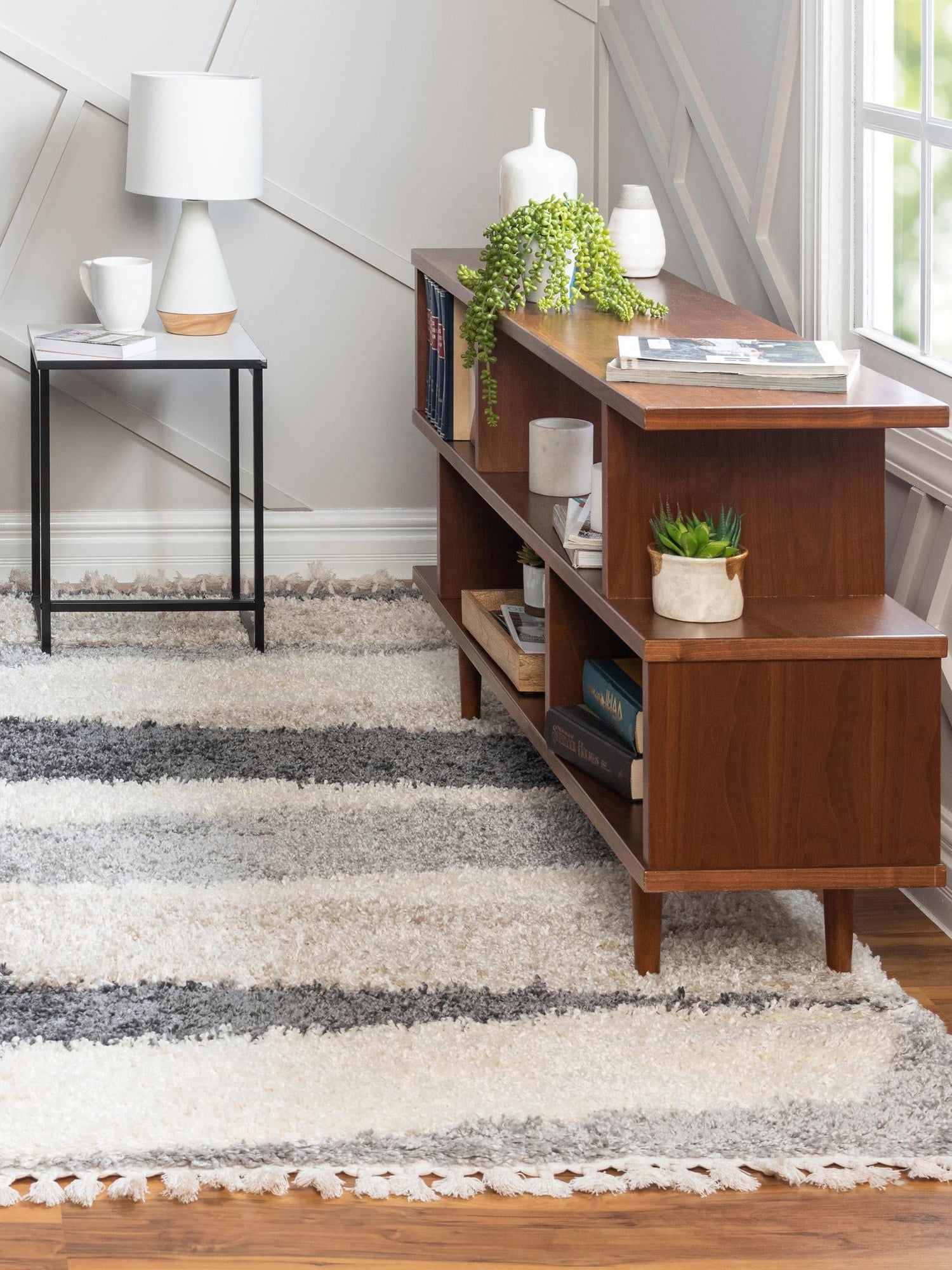 - Luxurious Texture: Crafted with 100% polypropylene, this rug offers a soft, plush feel underfoot. The shag design adds a sense of indulgence and comfort, perfect for relaxing or entertaining. Enjoy the tactile pleasure of sinking your toes into this beautifully crafted rug.