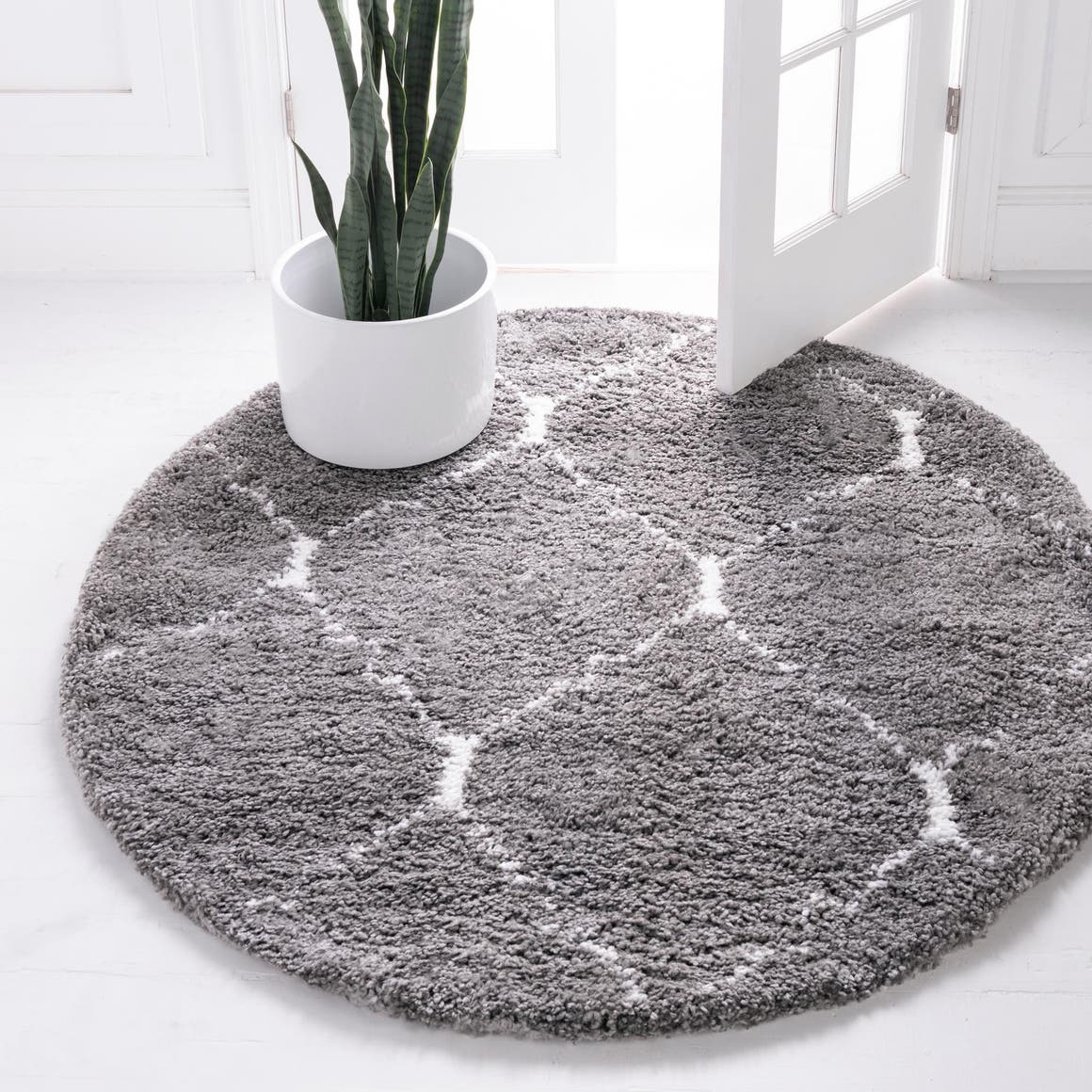 Gray 8' x 8' Rabat Shag Round Area Rug Thick Soft Touch Flu...