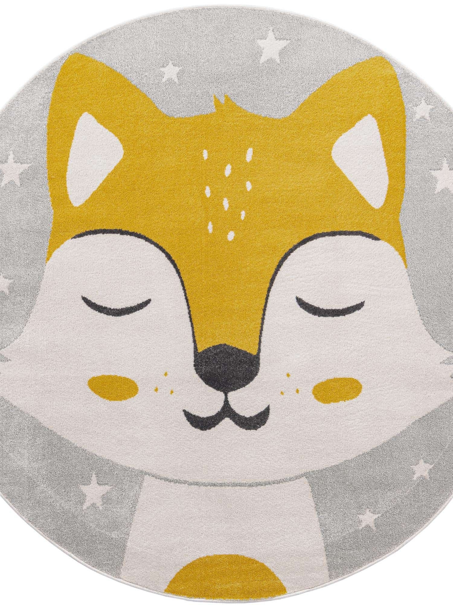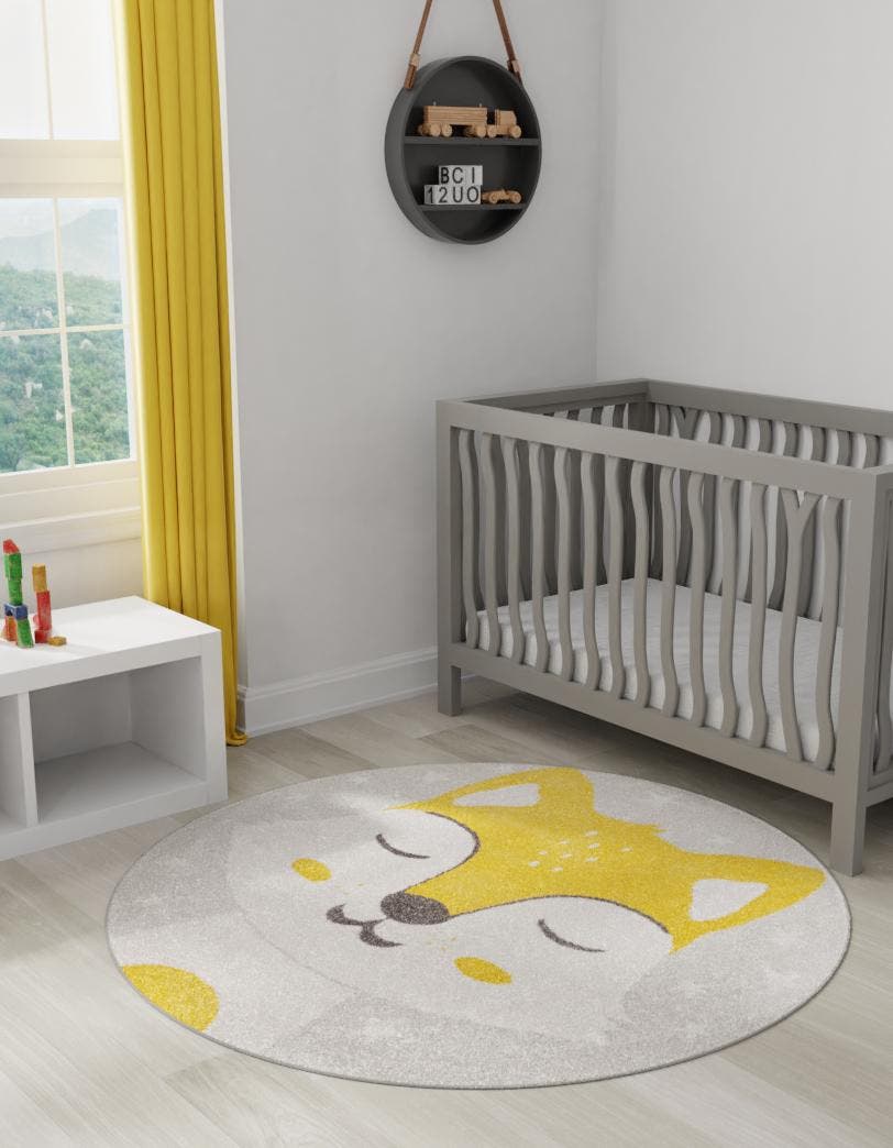 Gray 7' 10 x 7' 10 Whimsy Kids Round Area Rug for Baby Nurs...