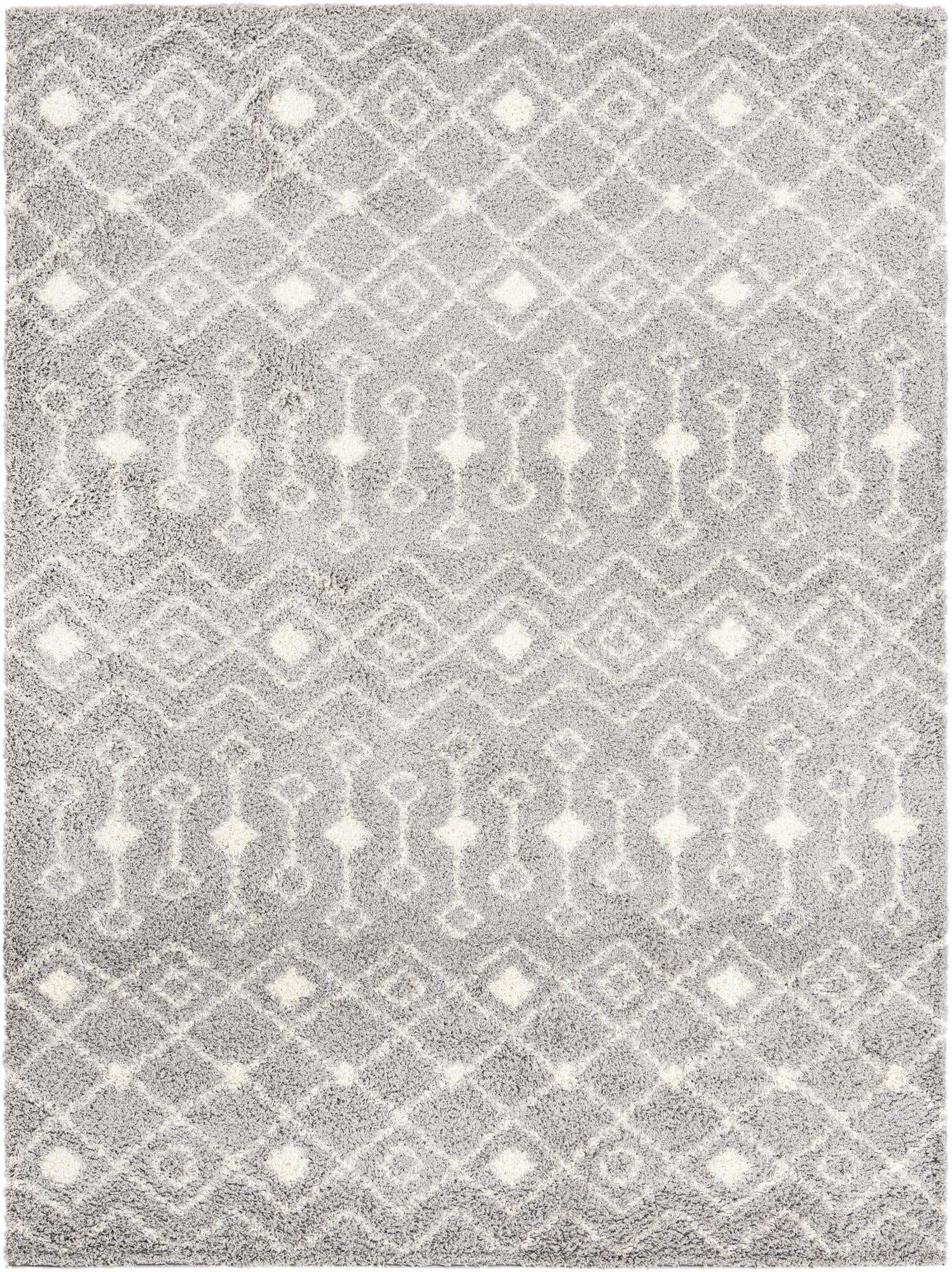 Gray 9' x 12' Moroccan Trellis Shag Rectangle Area Rug Thick Soft Touch Fluffy & Plush Shaggy Pile