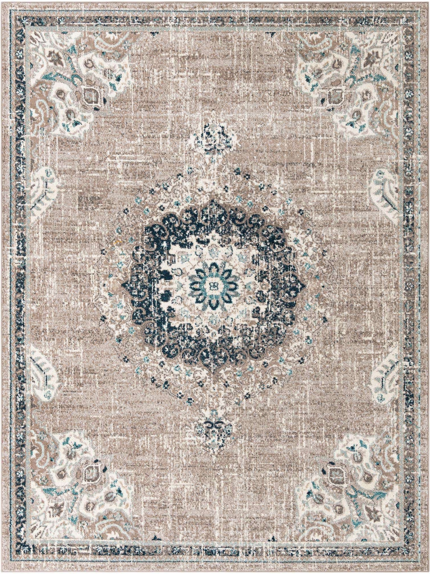 Washable Gray Blue 2' x 3' 1 Renaissance Rectangle Area Rug Easy to Clean Stain Resistant & Durable