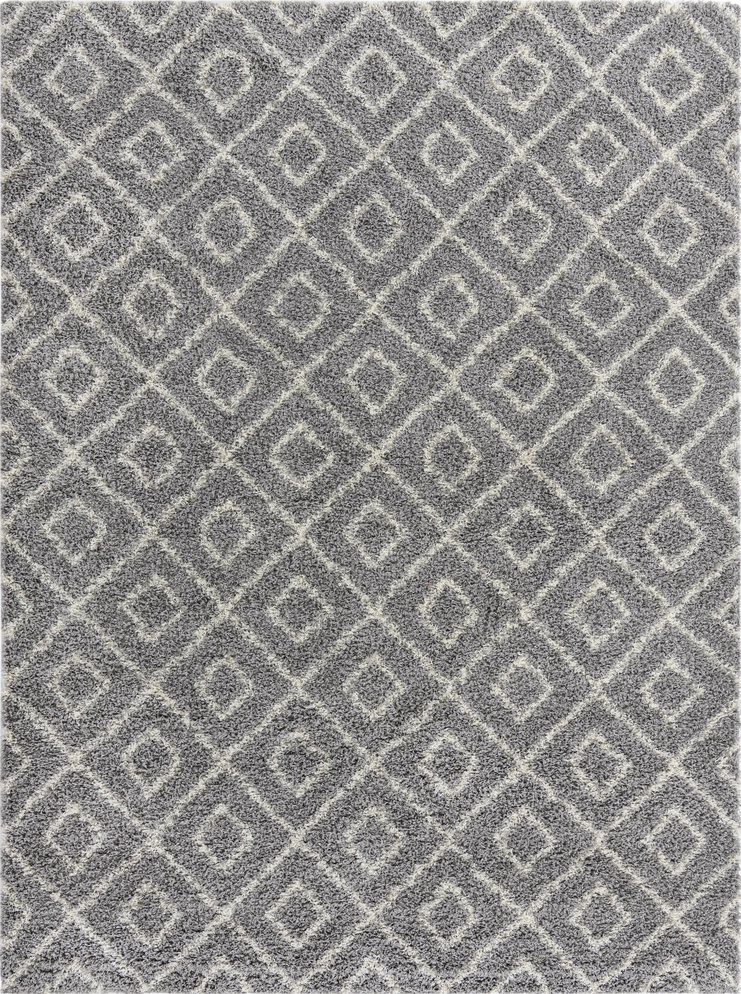 Gray 9' x 12' Trellis Shag Rectangle Area Rug Thick Soft Touch Fluffy & Plush Shaggy Pile