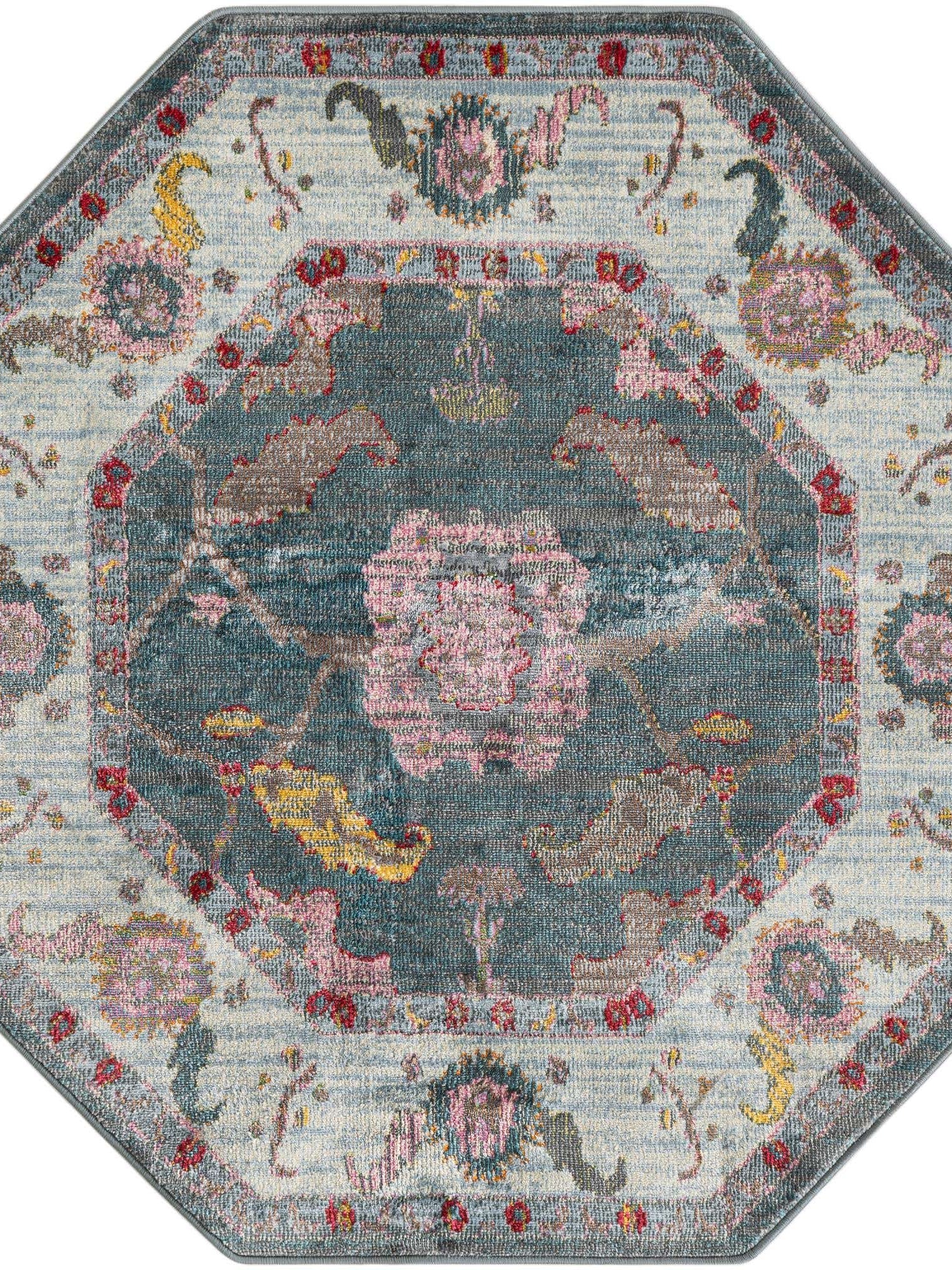Gray and Blue 4' x 4' Paragon Octagon Area Rug 100% Polypropylene Colorful Vivid Boho Style Modern Carpet for Unique Interiors