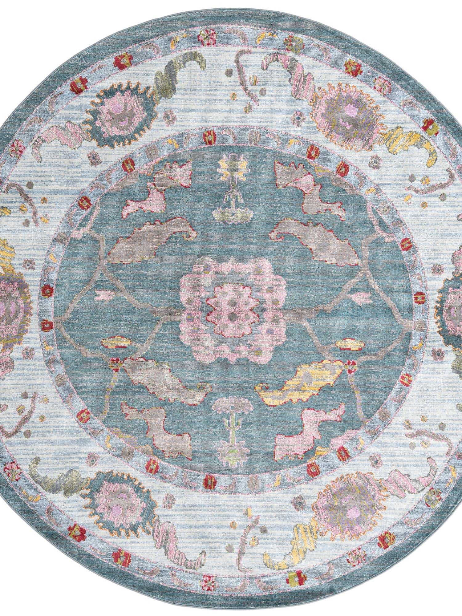 Washable Multicolor 5' x 5' Timeless Round Area Rug Easy to Clean Stain Resistant & Durable