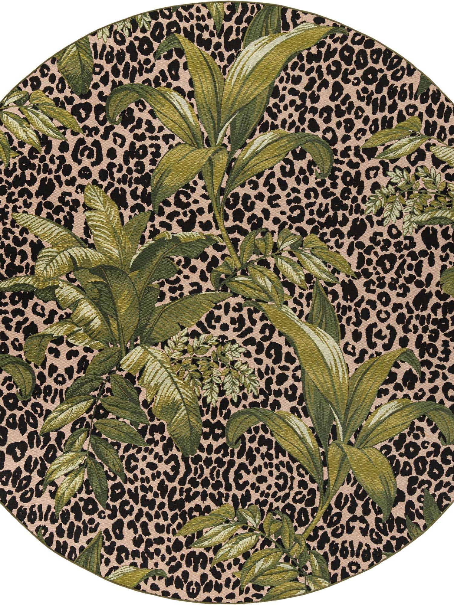 Green 10' x 10' Outdoor Botanical Round Area Rug Weather Re...