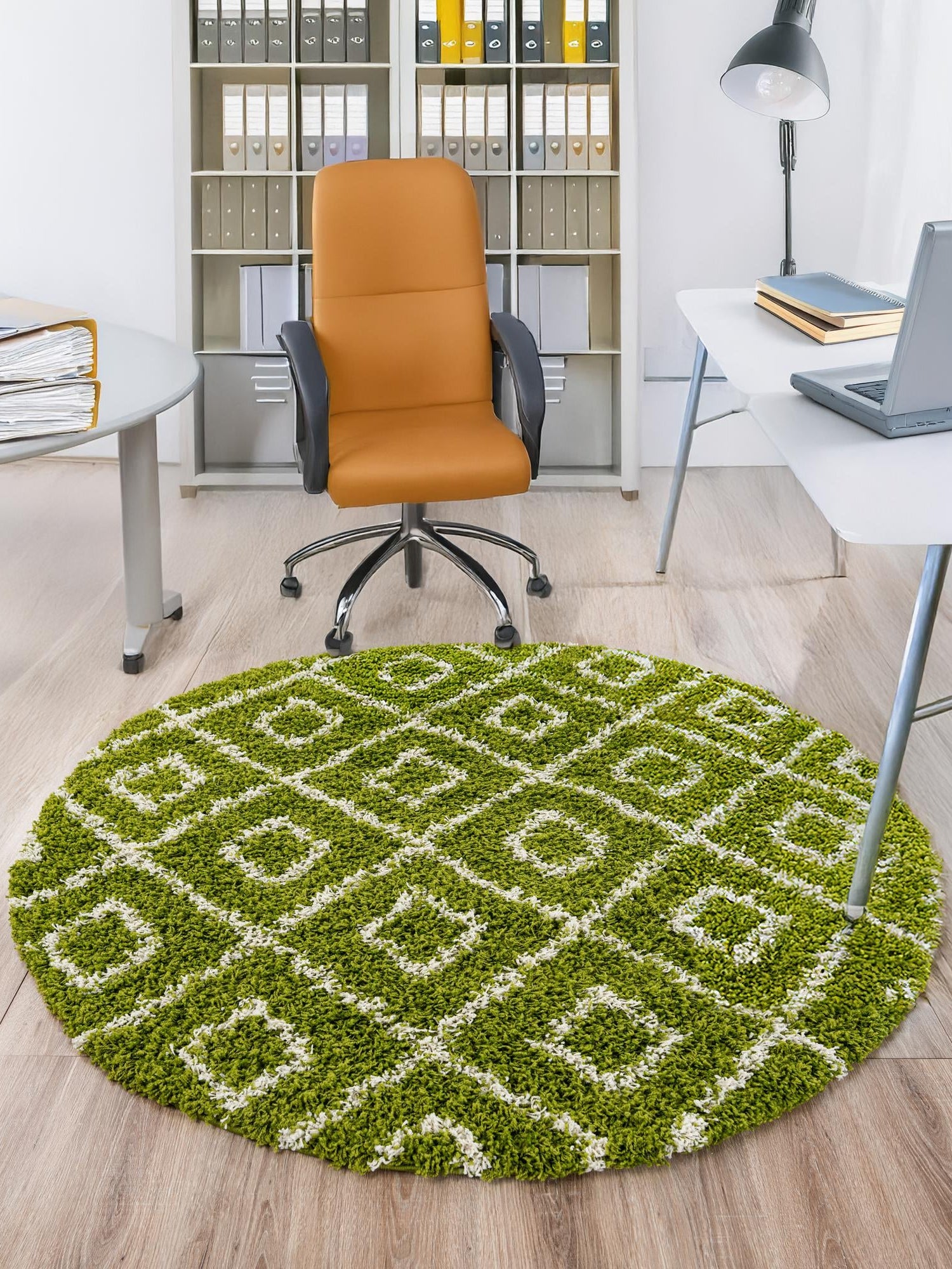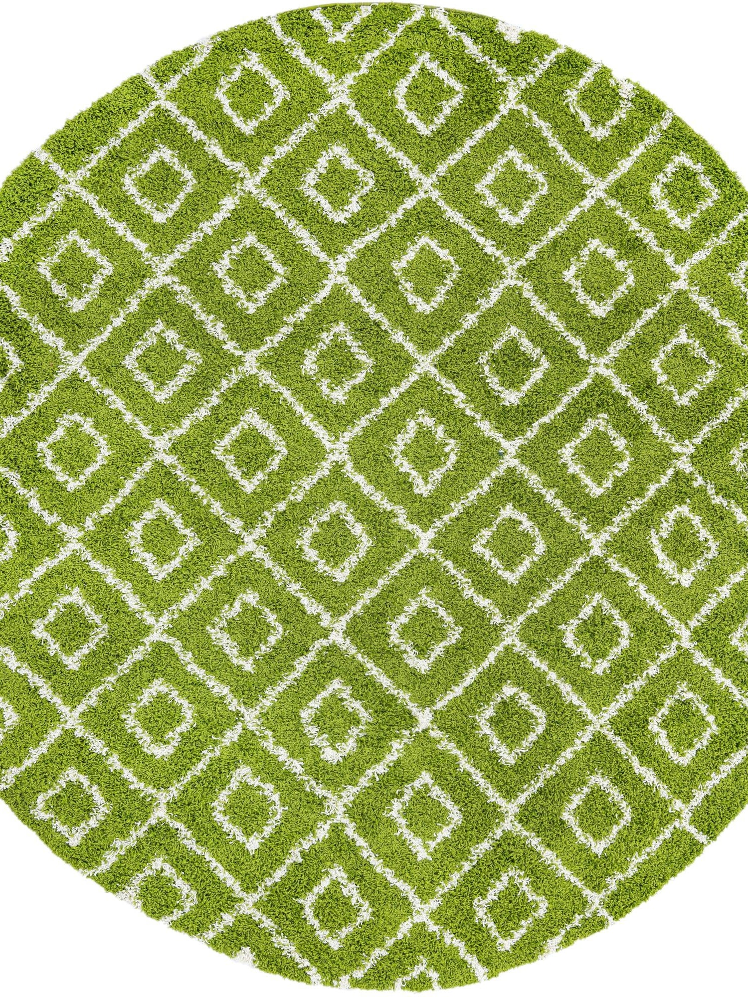 Green 10' x 10' Trellis Shag Round Area Rug Thick Soft Touch Fluffy & Plush Shaggy Pile