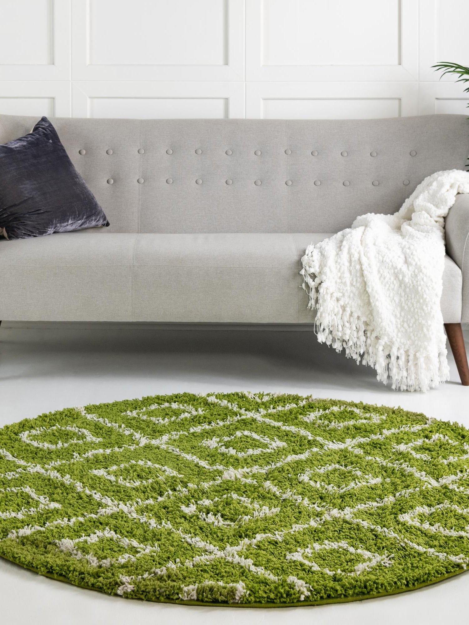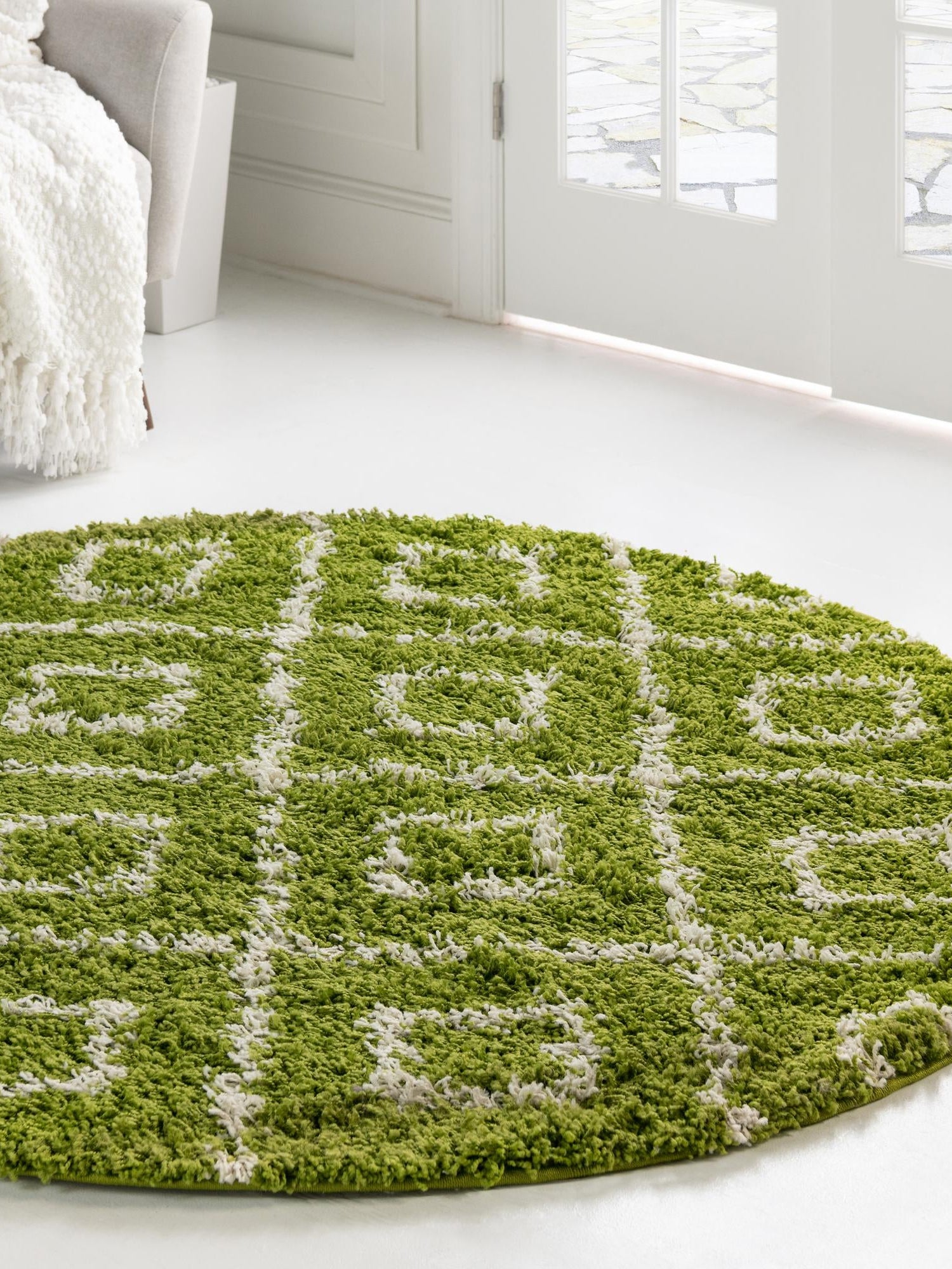 Green 10' x 10' Trellis Shag Round Area Rug Thick Soft Touc...