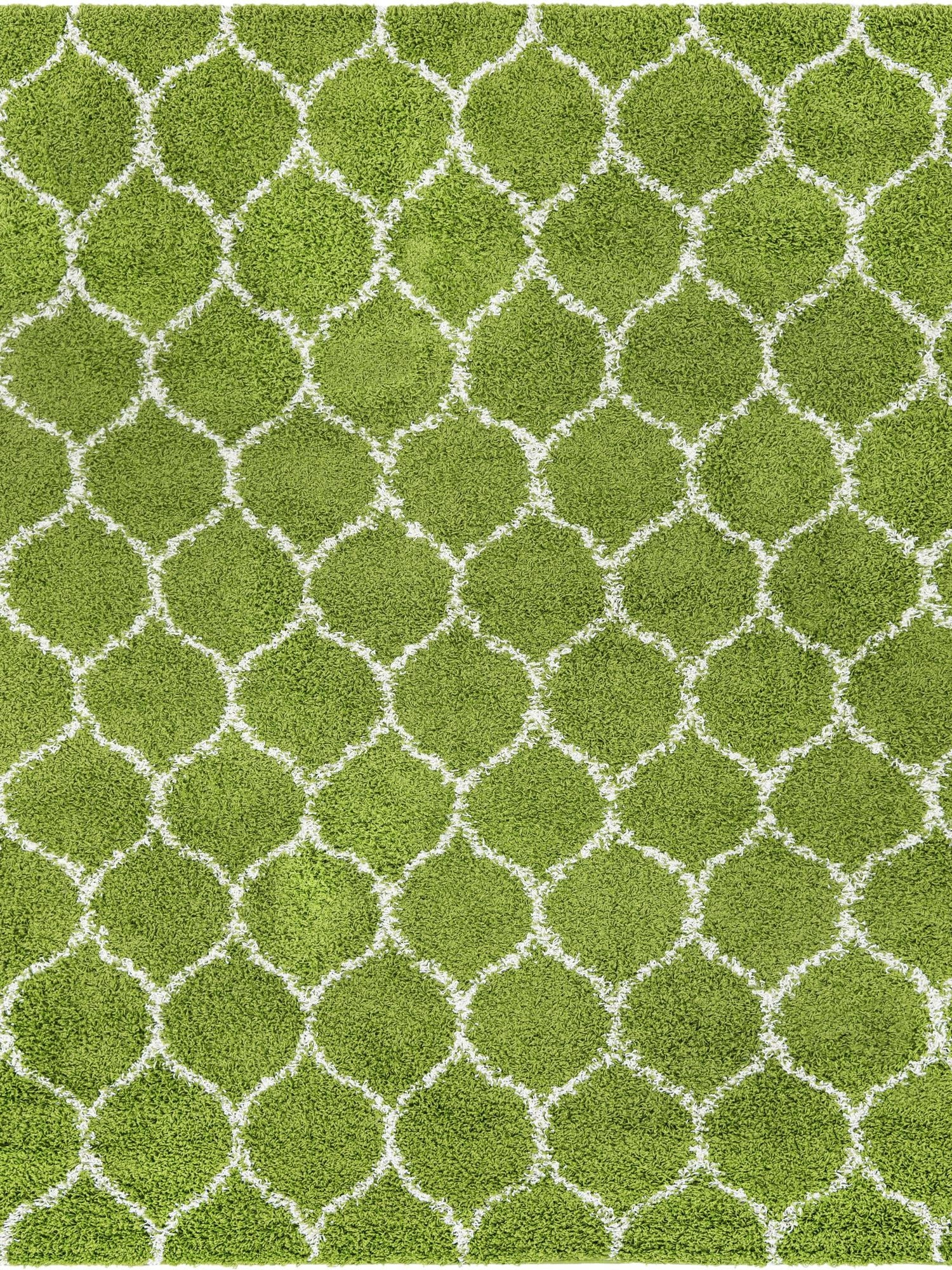 Green 10' x 10' Trellis Shag Square Area Rug Thick Soft Touch Fluffy & Plush Shaggy Pile