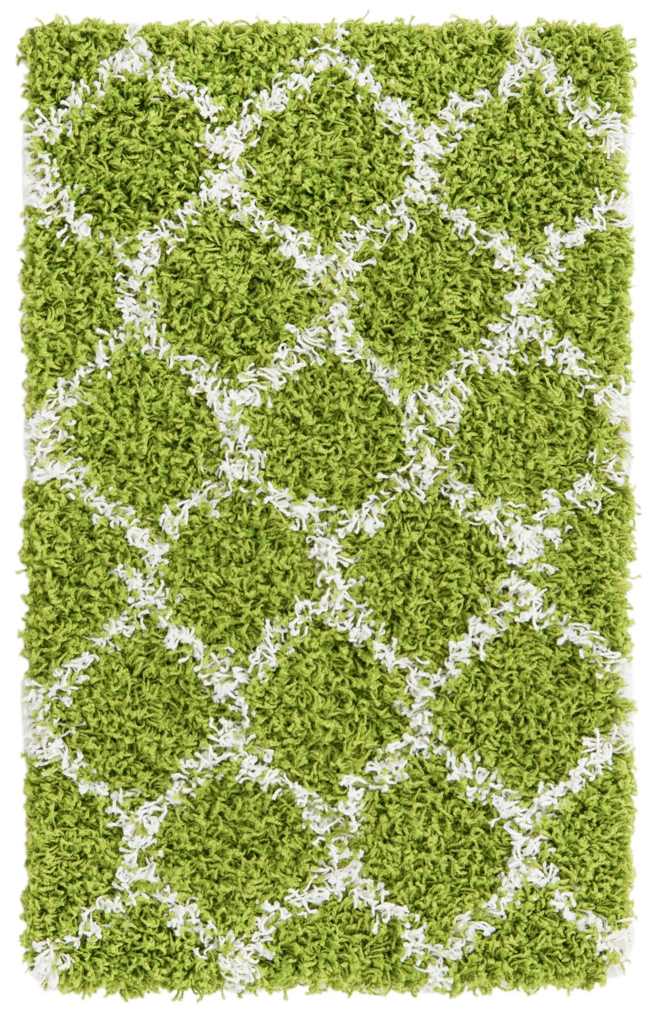Green 2' x 3' Trellis Shag Rectangle Area Rug Thick Soft Touch Fluffy & Plush Shaggy Pile