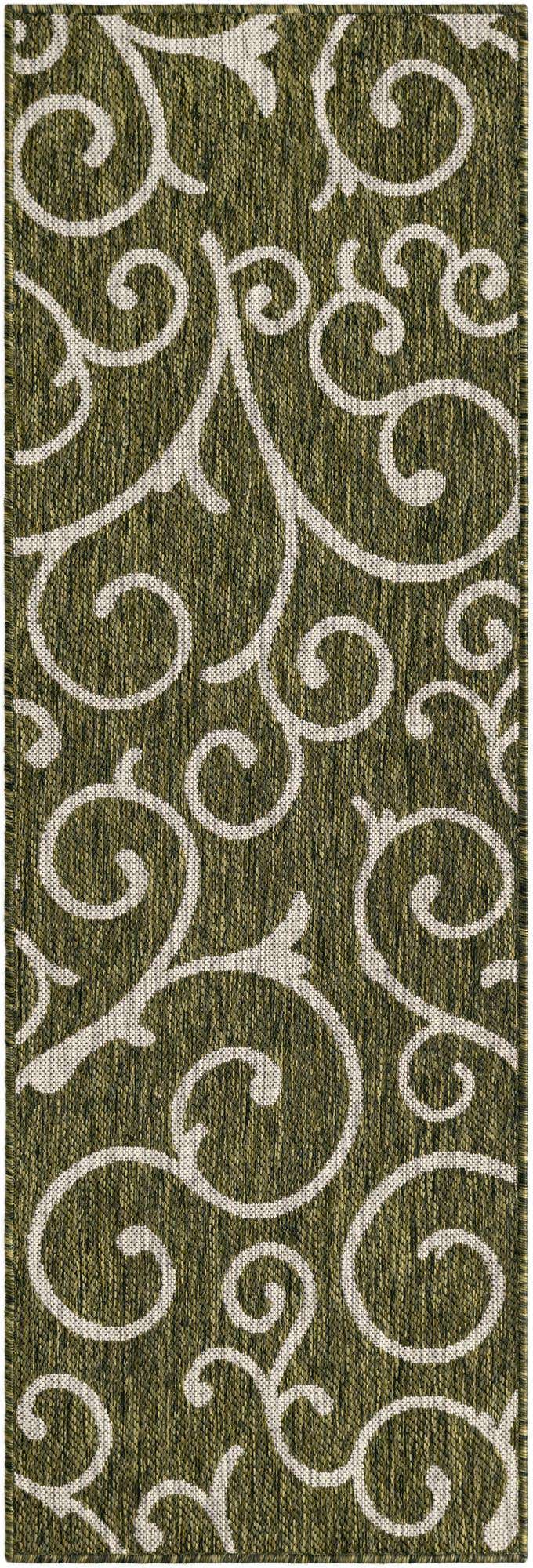 Green 2' x 6' 1 Outdoor Botanical Runner Area Rug Weather Resistant for Patio, Deck, Terrace, Balcony, Porch