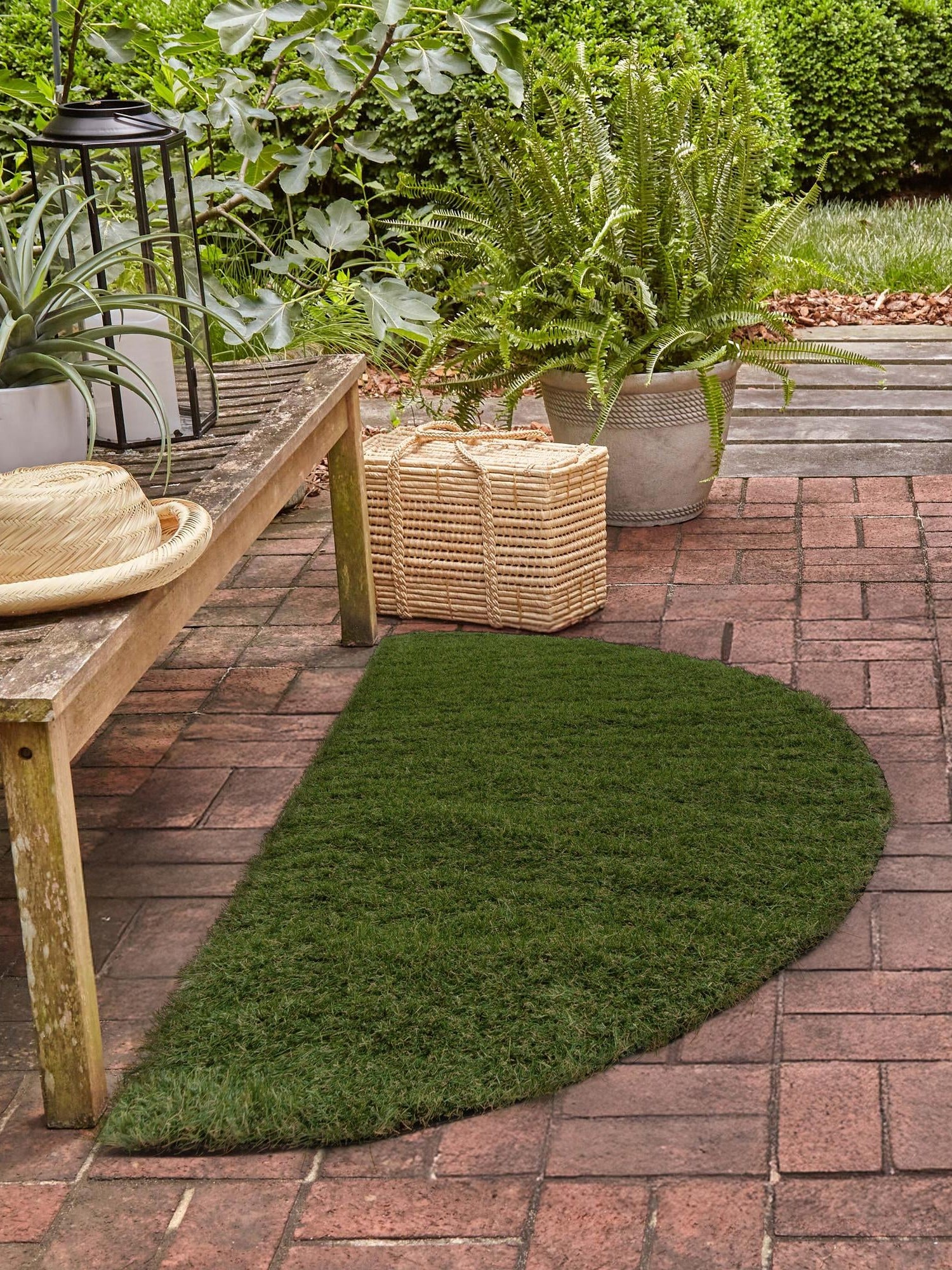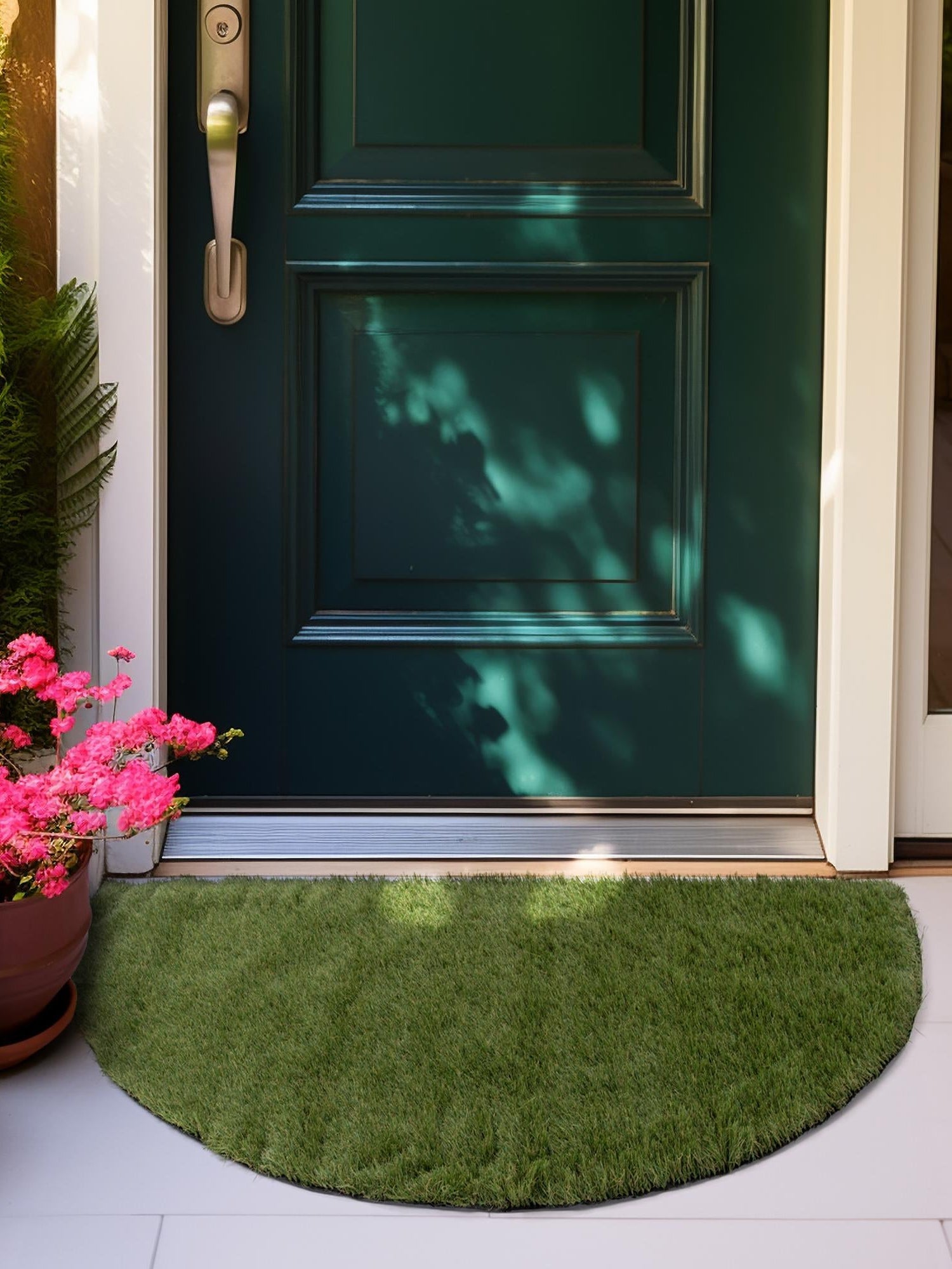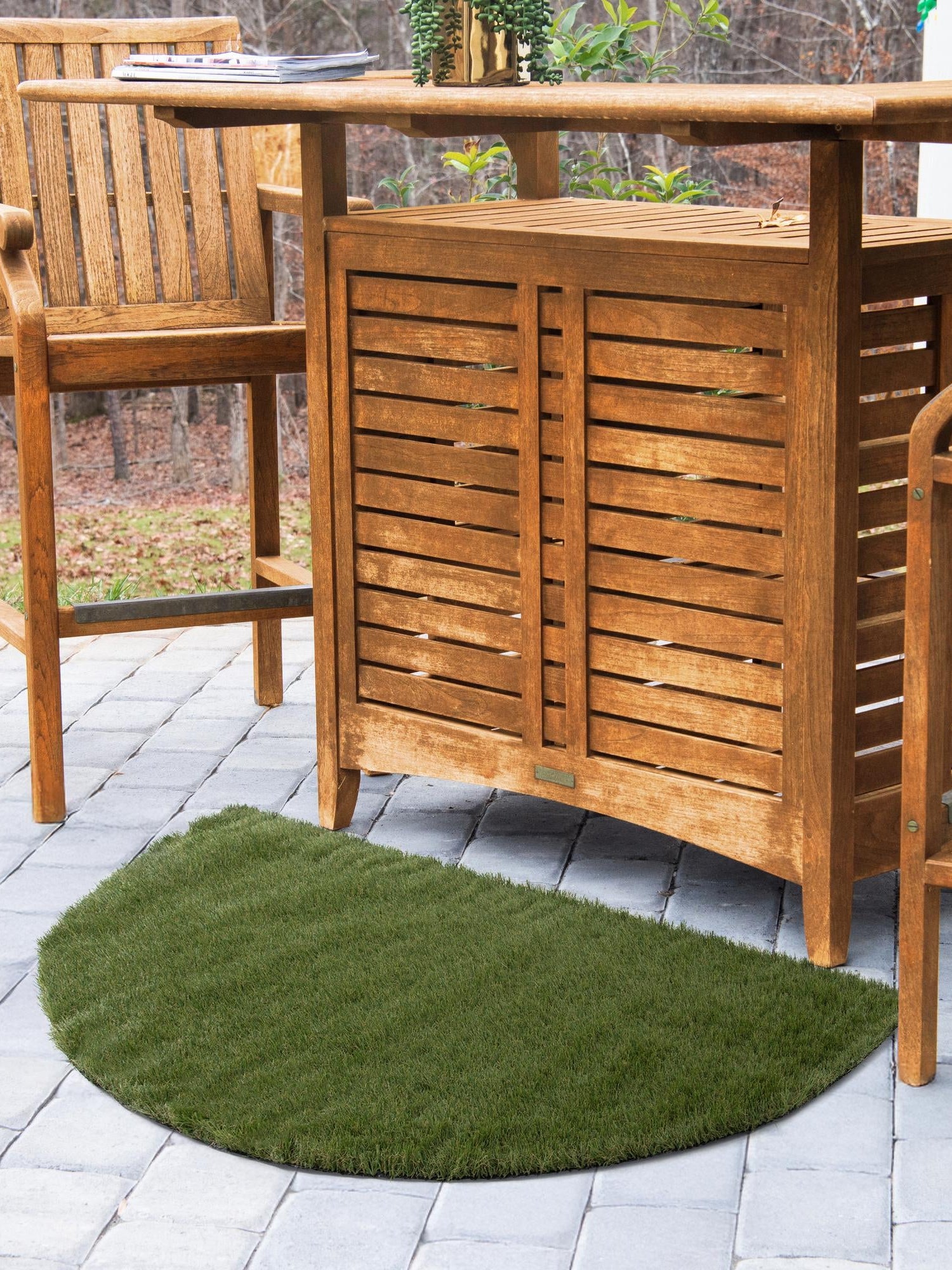 Green 3' 1 x 6' 1 Outdoor Grass Hearth Half-Round Semicircle Area Rug Thick Soft Touch Fluffy & Plush Shaggy Pile Weather Resistant for Patio, Deck, Terrace, Balcony, Porch
