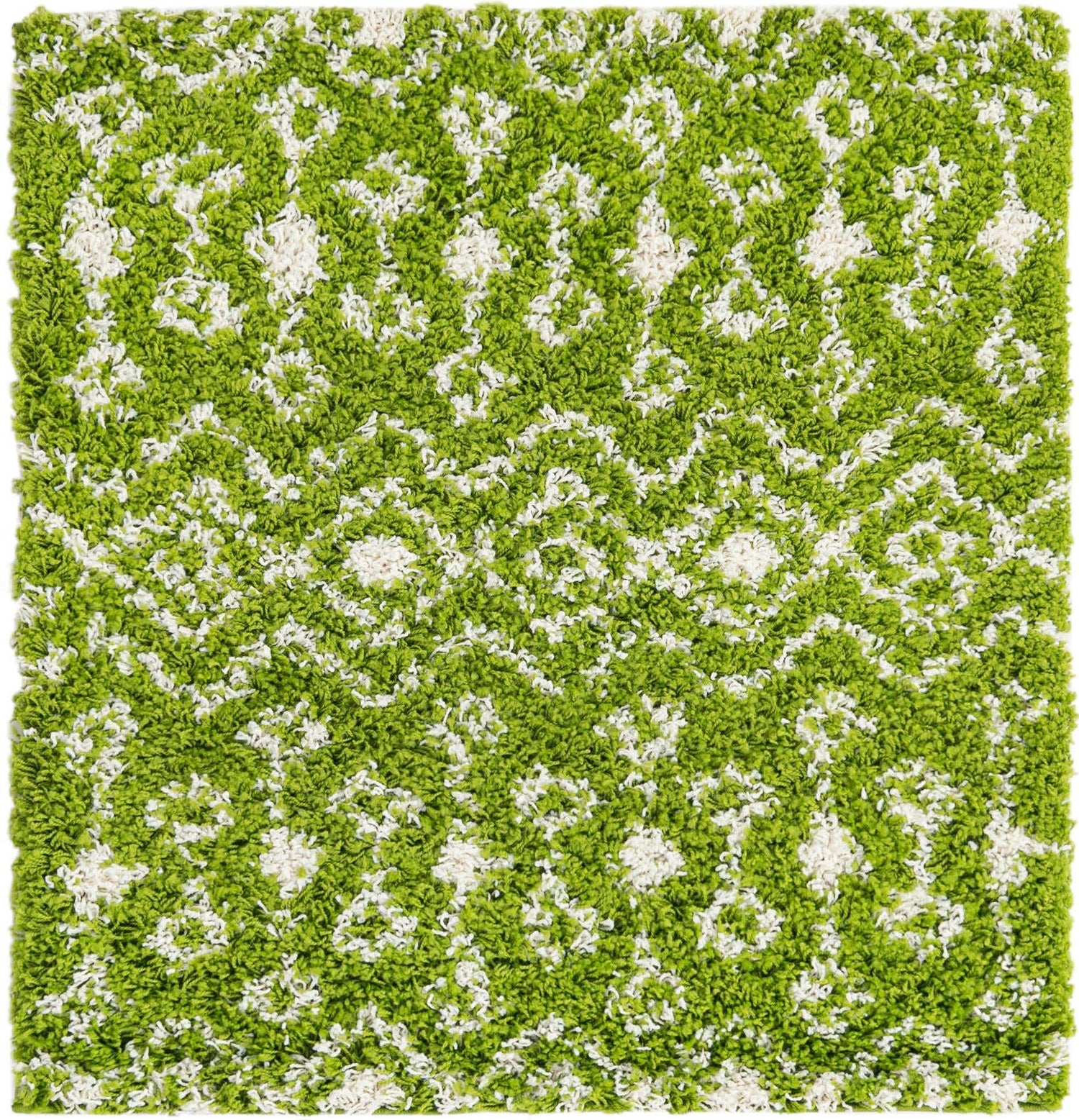 Green 3' 1 x 3' 1 Moroccan Trellis Shag Square Area Rug Thick Soft Touch Fluffy & Plush Shaggy Pile