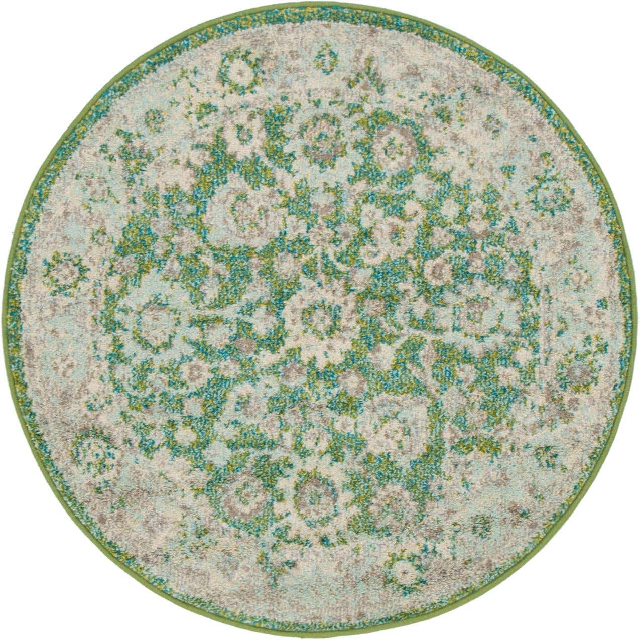 Washable Multicolor 5' x 5' Timeless Round Area Rug Easy to Clean Stain Resistant & Durable