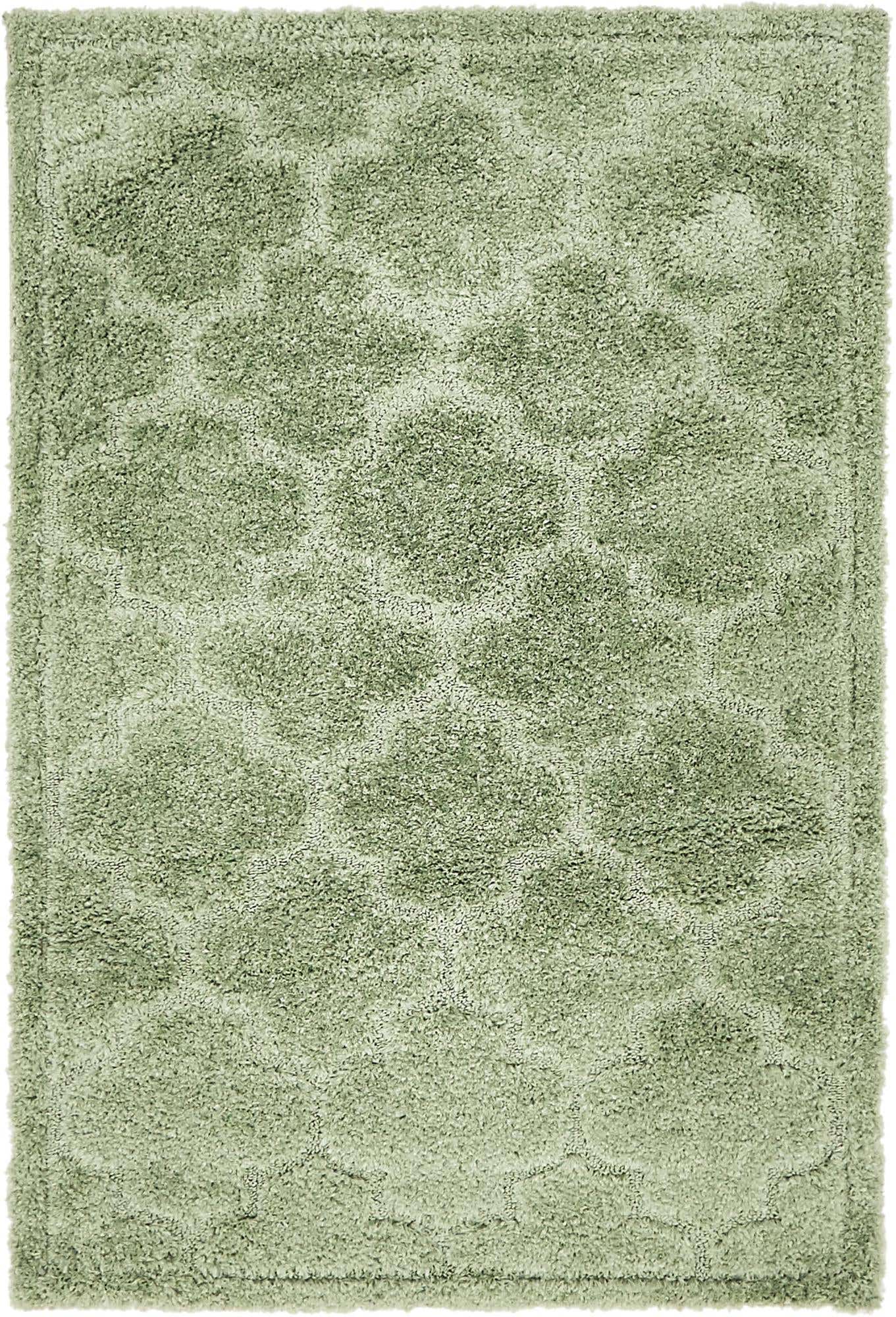 Green 4' 1 x 6' 1 Trellis Shag Rectangle Area Rug Thick Soft Touch Fluffy & Plush Shaggy Pile