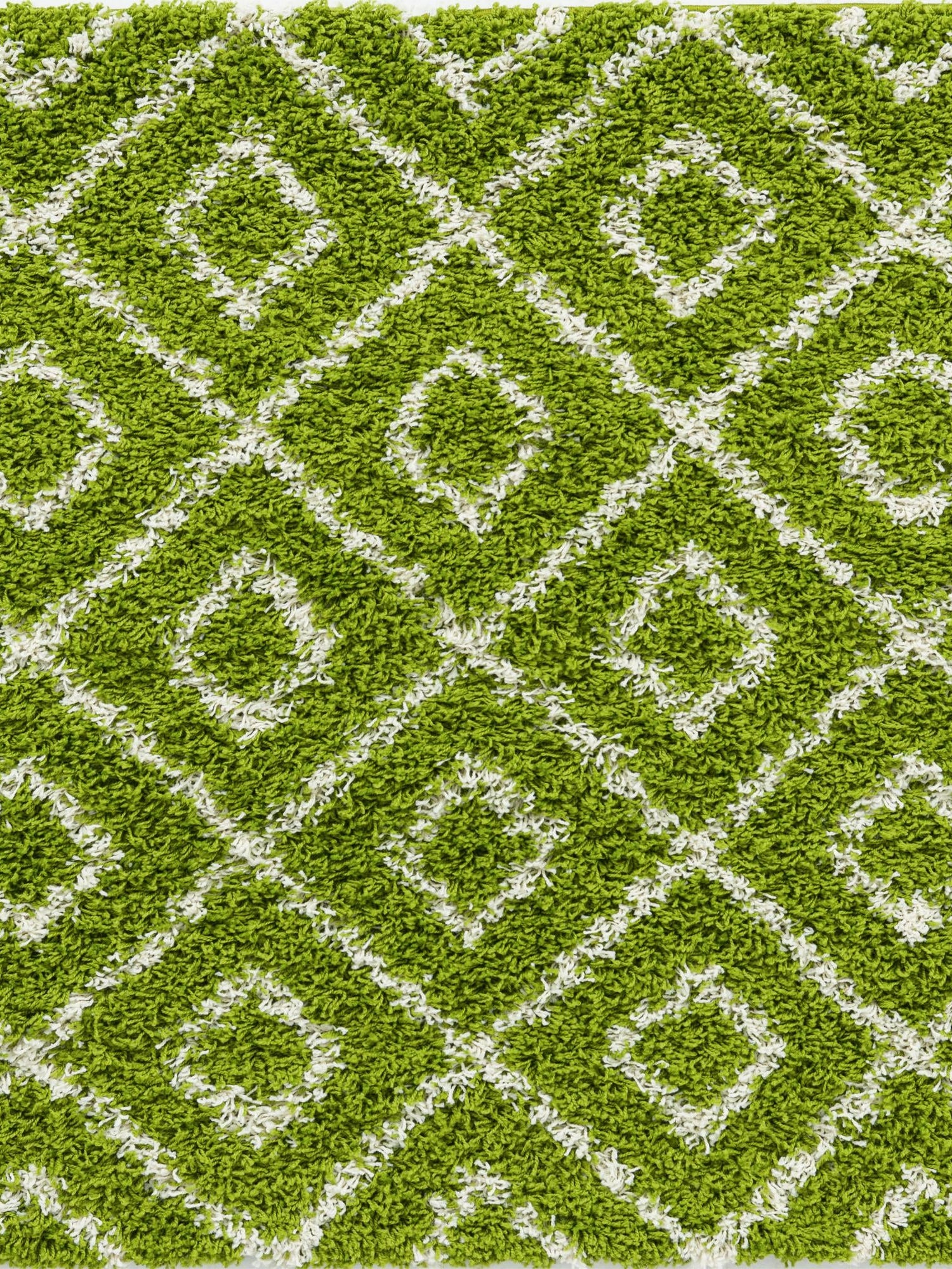Green 4' x 4' Trellis Shag Square Area Rug Thick Soft Touch Fluffy & Plush Shaggy Pile