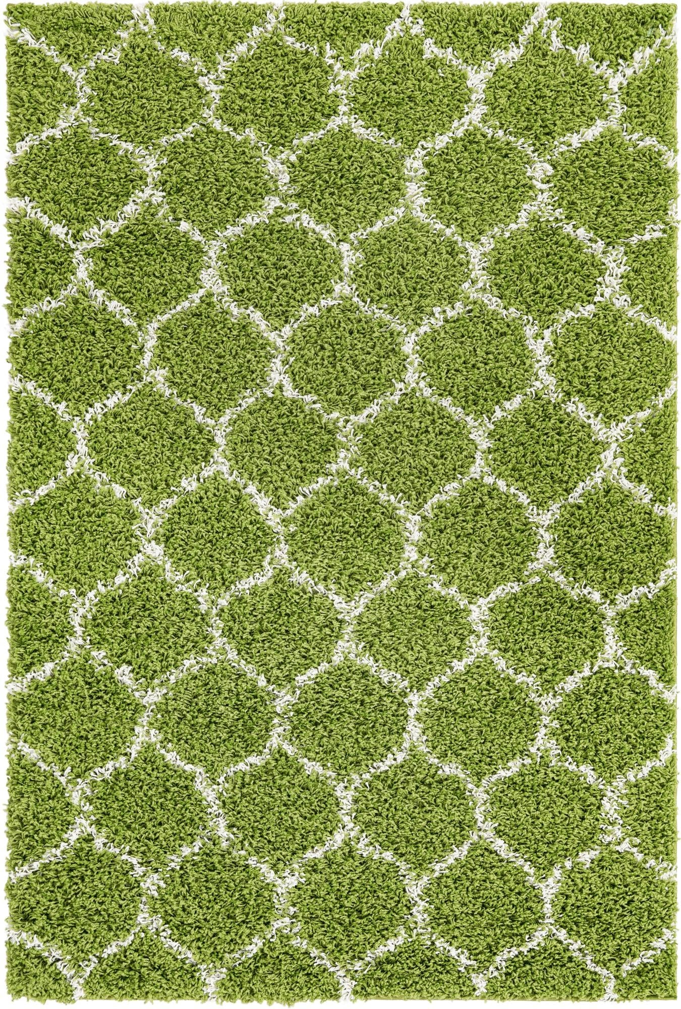 Green 4' x 6' Trellis Shag Rectangle Area Rug Thick Soft Touch Fluffy & Plush Shaggy Pile