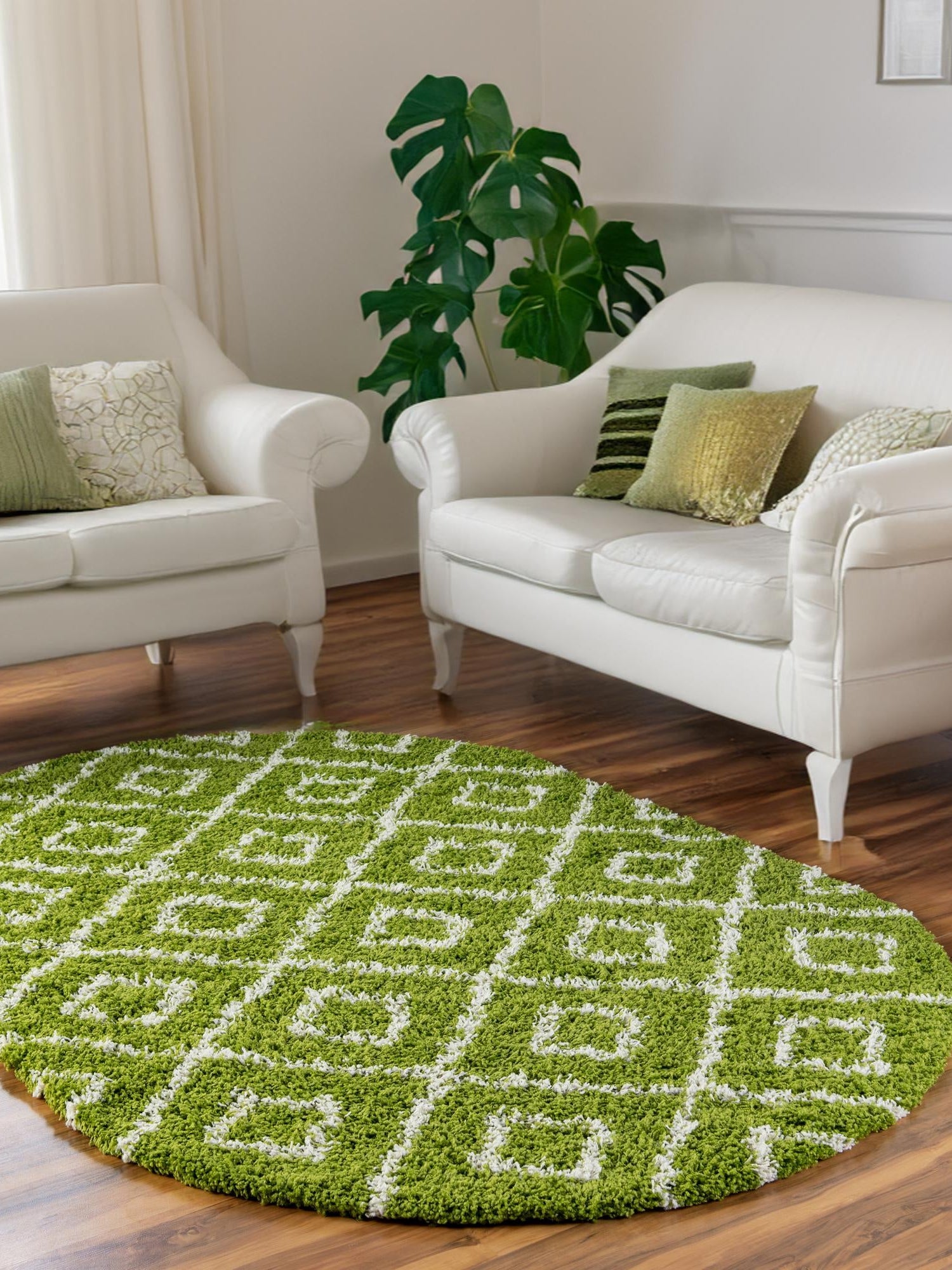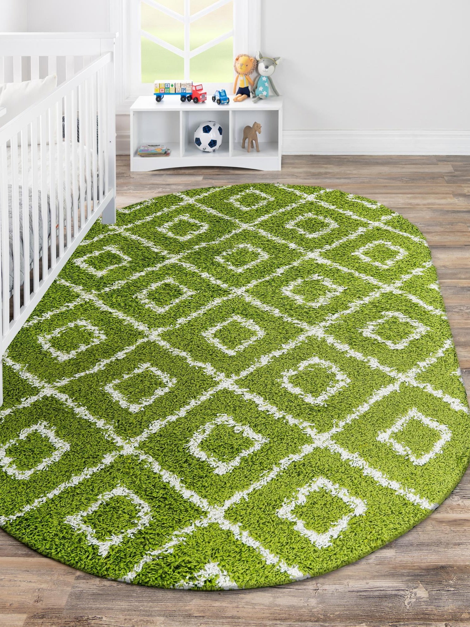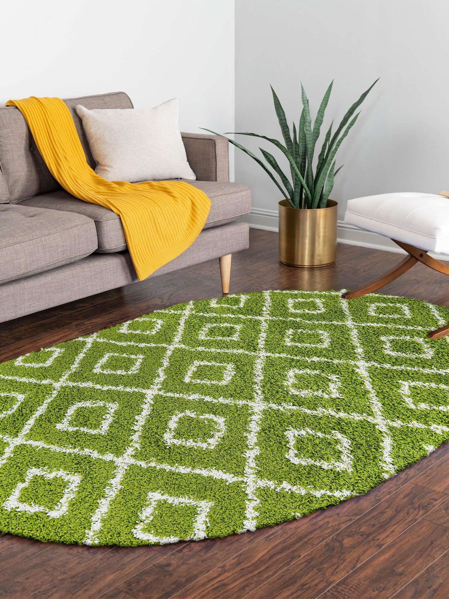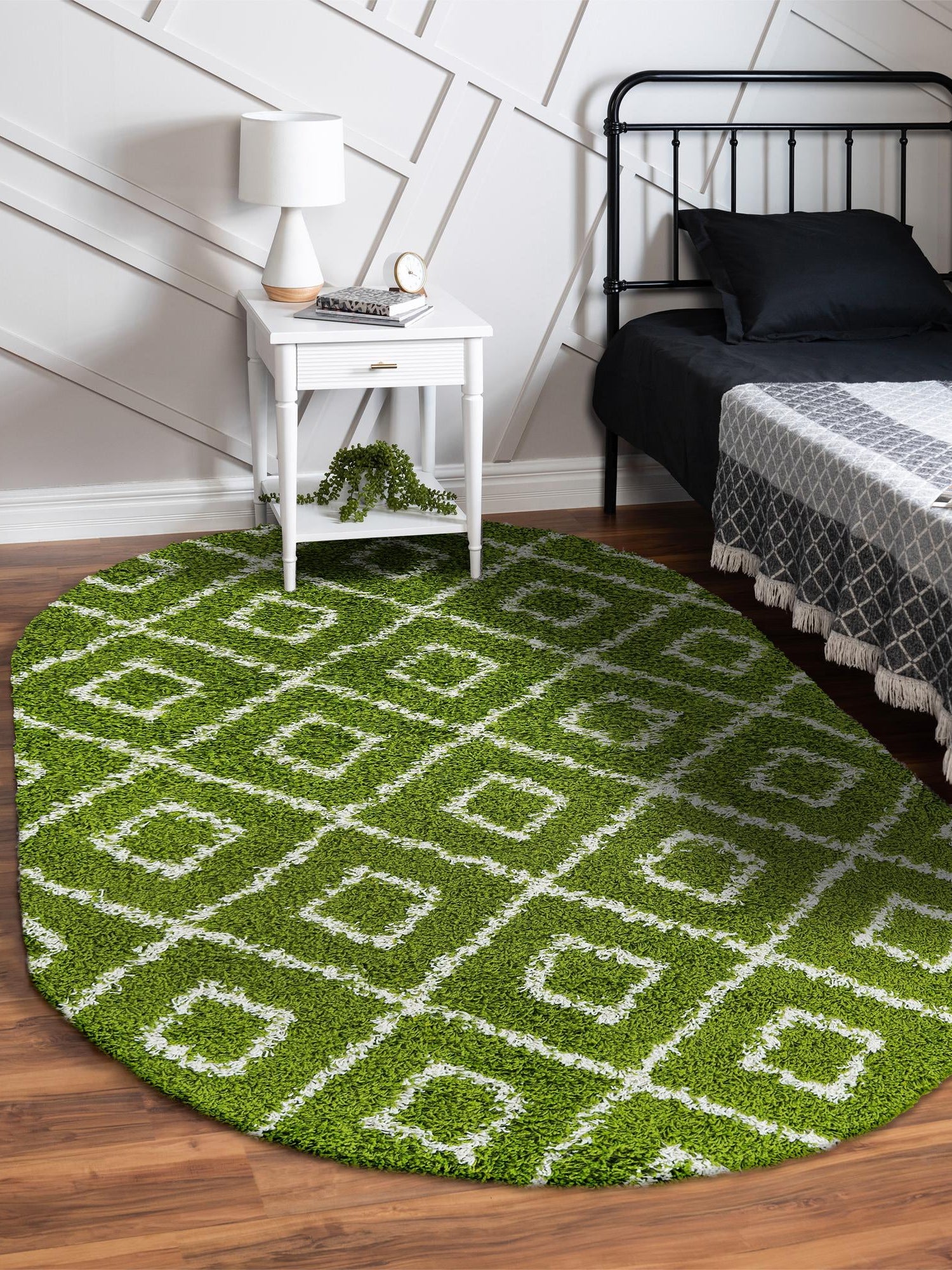 Green 4' x 6' Trellis Shag Oval Area Rug Thick Soft Touch Fluffy & Plush Shaggy Pile
