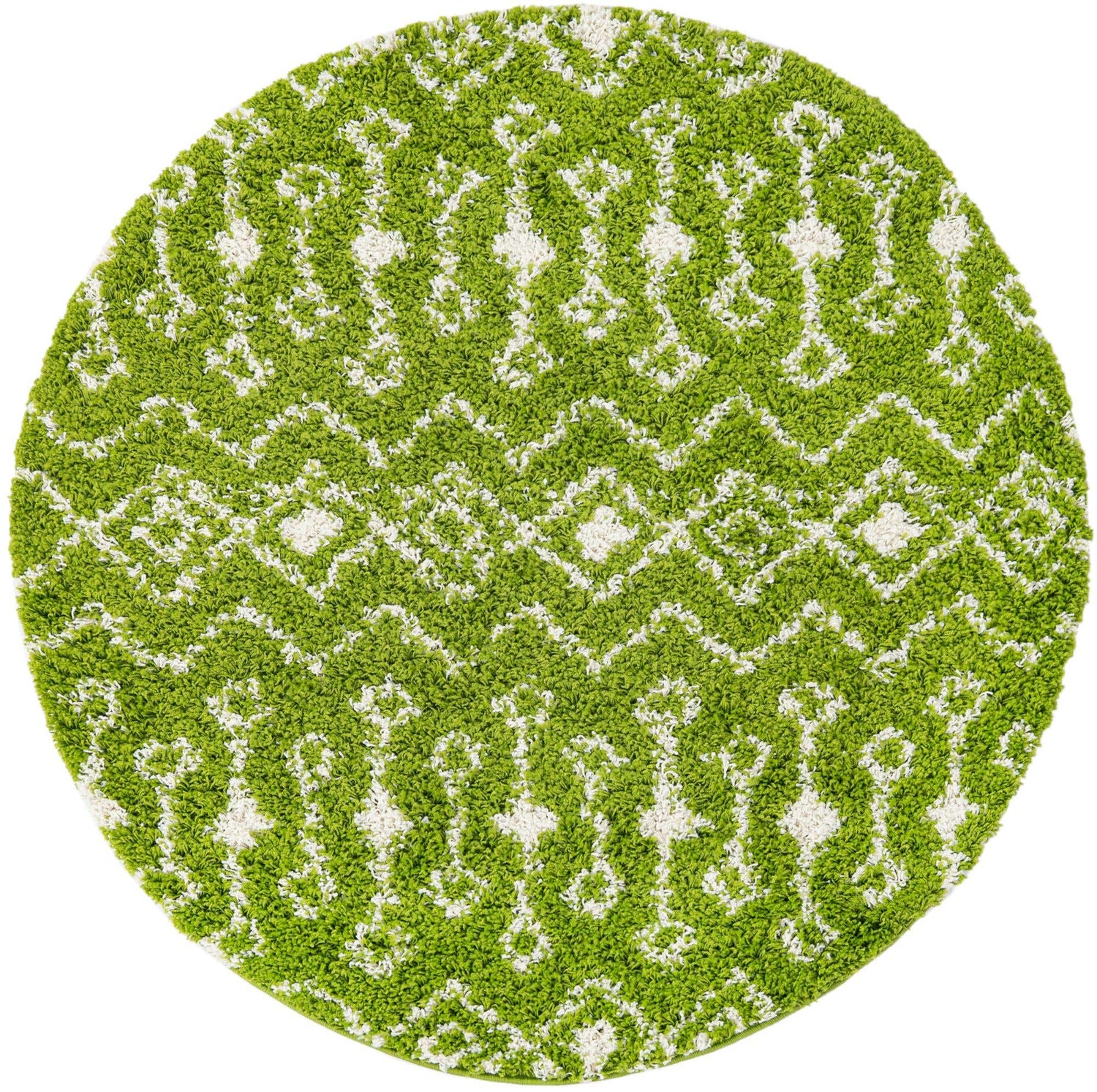 Green 5' 3 x 5' 3 Moroccan Trellis Shag Round Area Rug Thick Soft Touch Fluffy & Plush Shaggy Pile