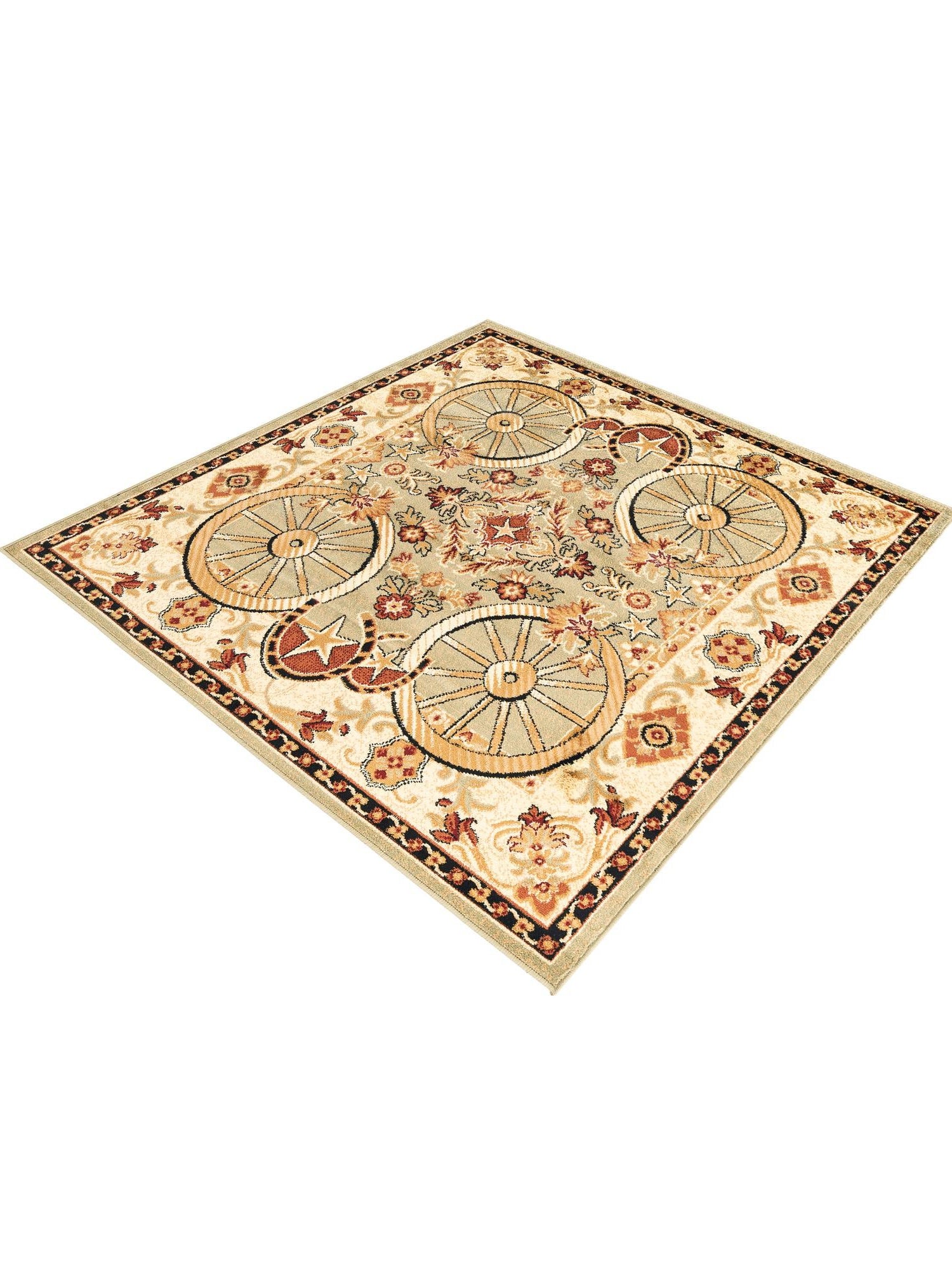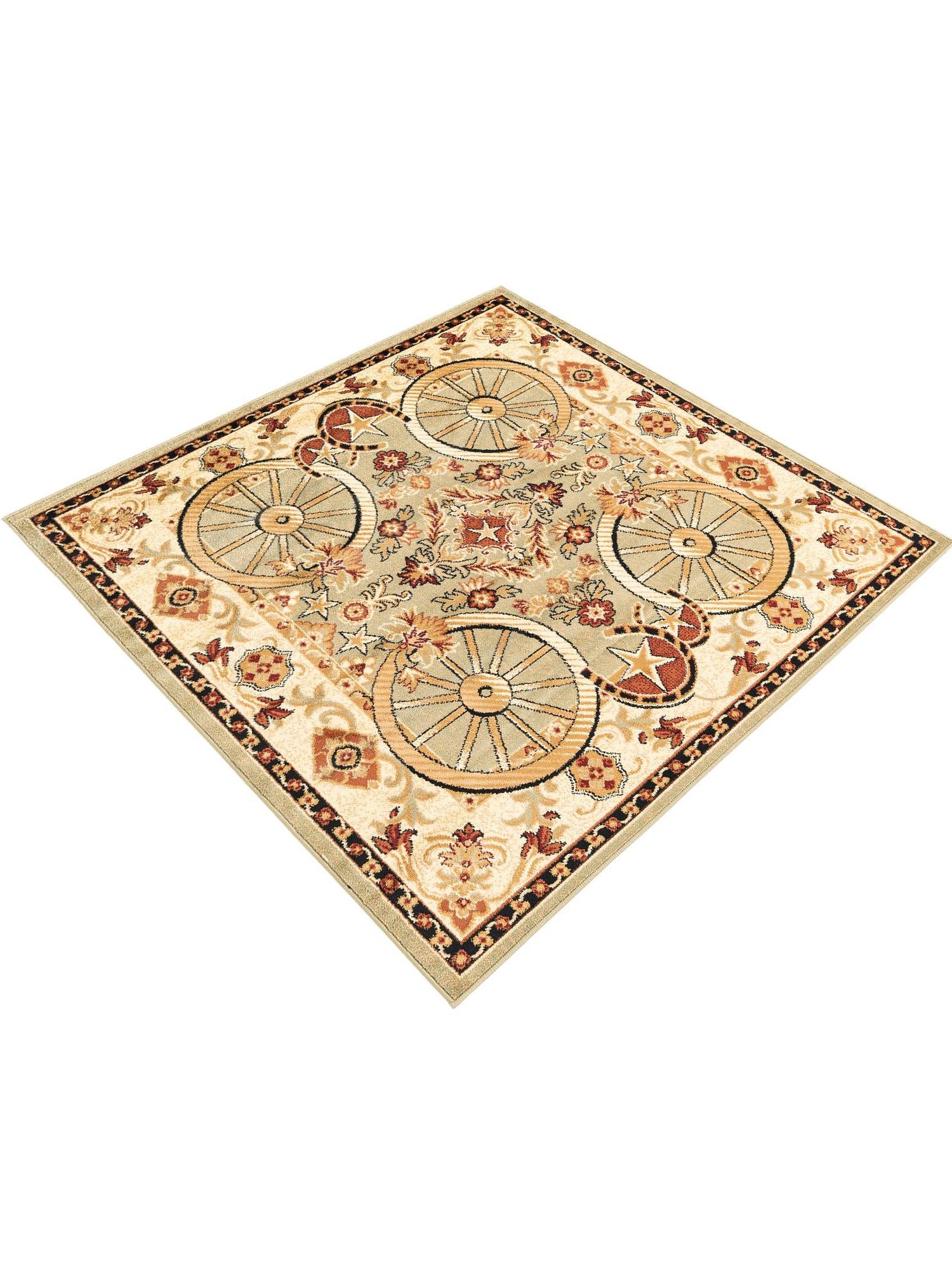 Washable Beige 7' 6 x 7' 6 Timeless Square Area Rug Easy to Clean Stain Resistant & Durable