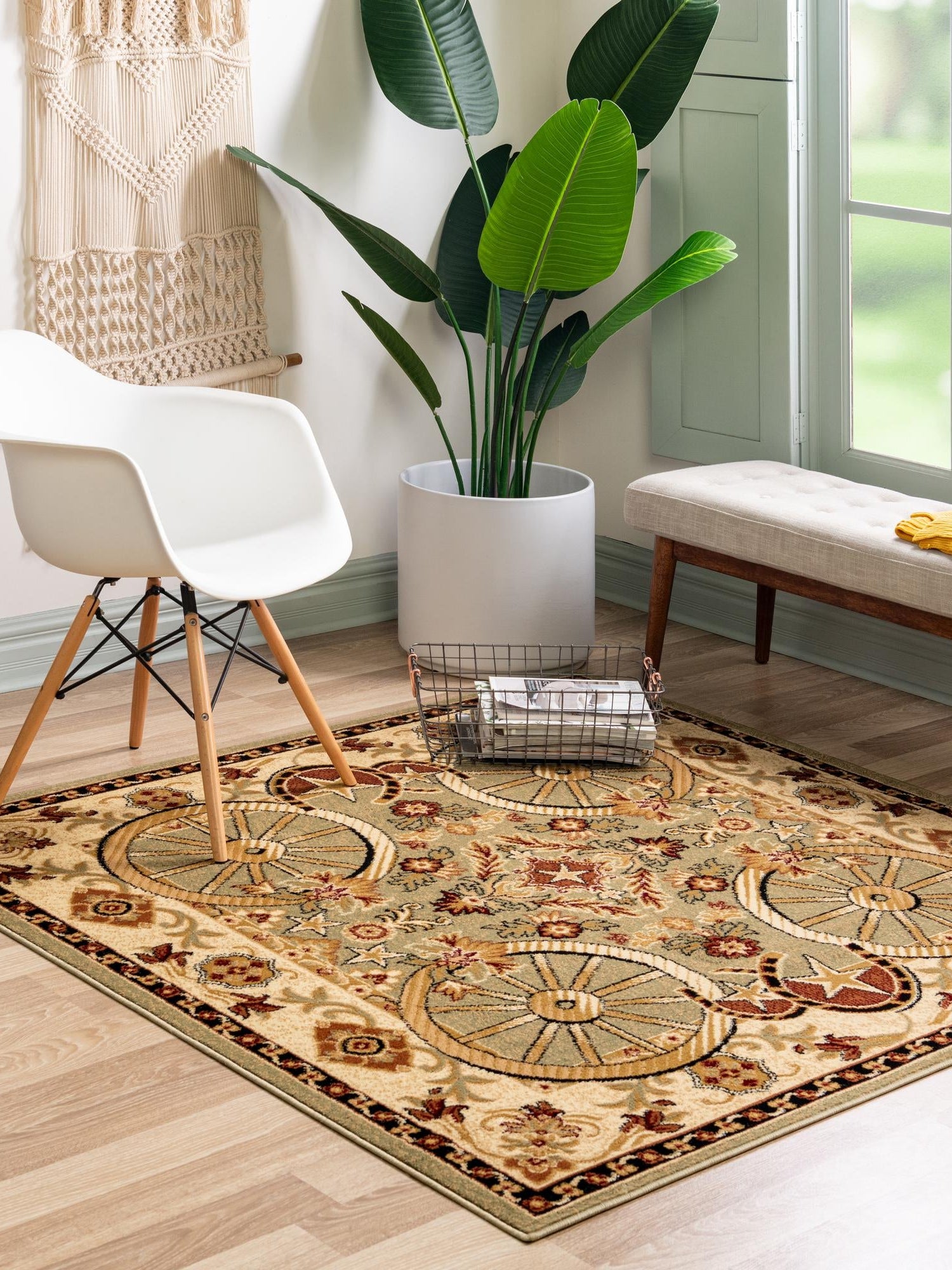 - Timeless Aesthetic: Featuring a traditional design that complements modern interiors, this rug adds a touch of elegance to your home. The rich green color infuses a sense of tranquility while also providing a vibrant focal point for your decor. It's a perfect choice for anyone looking to elevate their space with a classic touch.