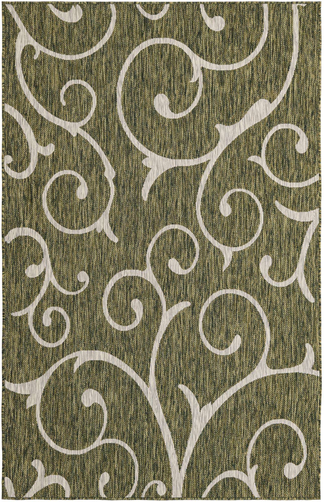 Green 5' 3 x 8' Outdoor Botanical Rectangle Area Rug Weathe...
