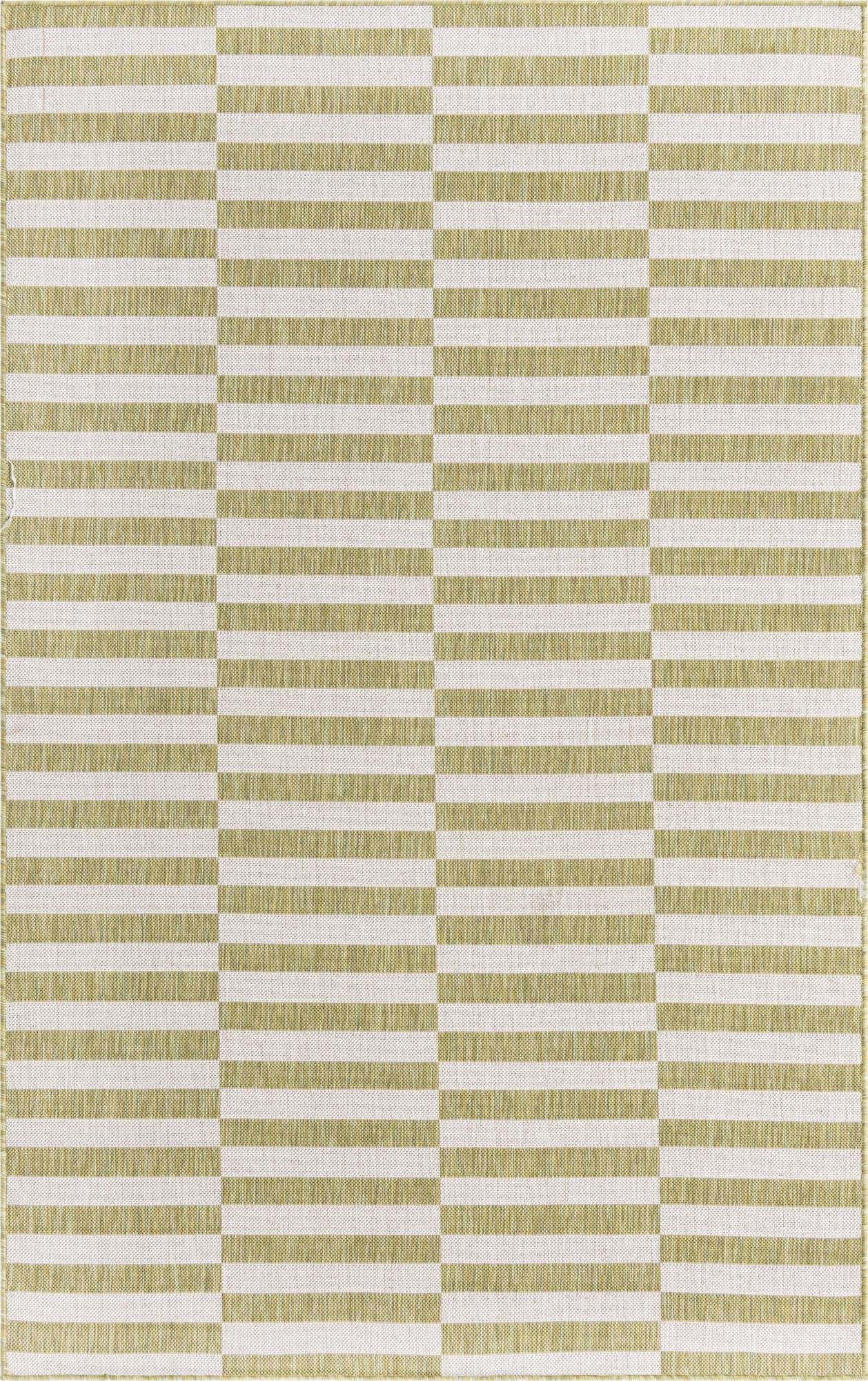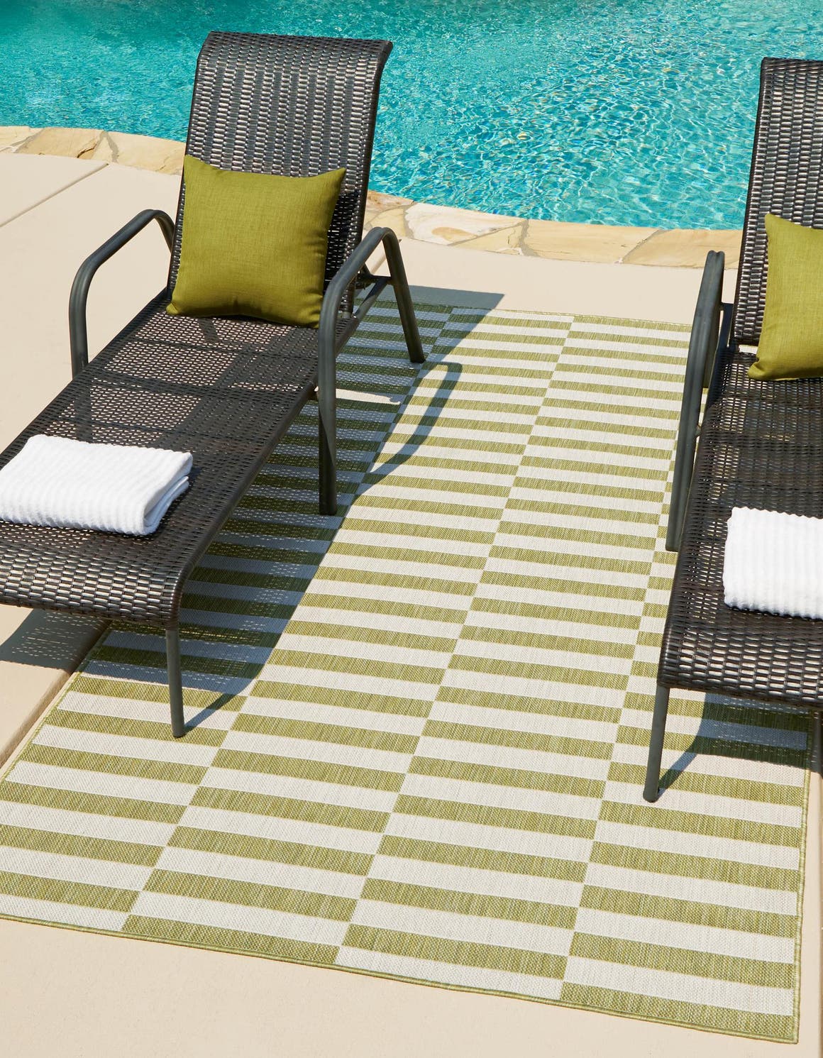 Green 5' 3 x 8' Outdoor Striped Rectangle Area Rug Weather Resistant for Patio, Deck, Terrace, Balcony, Porch