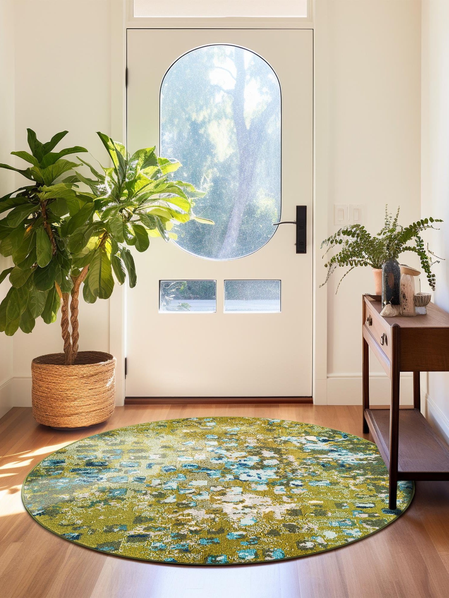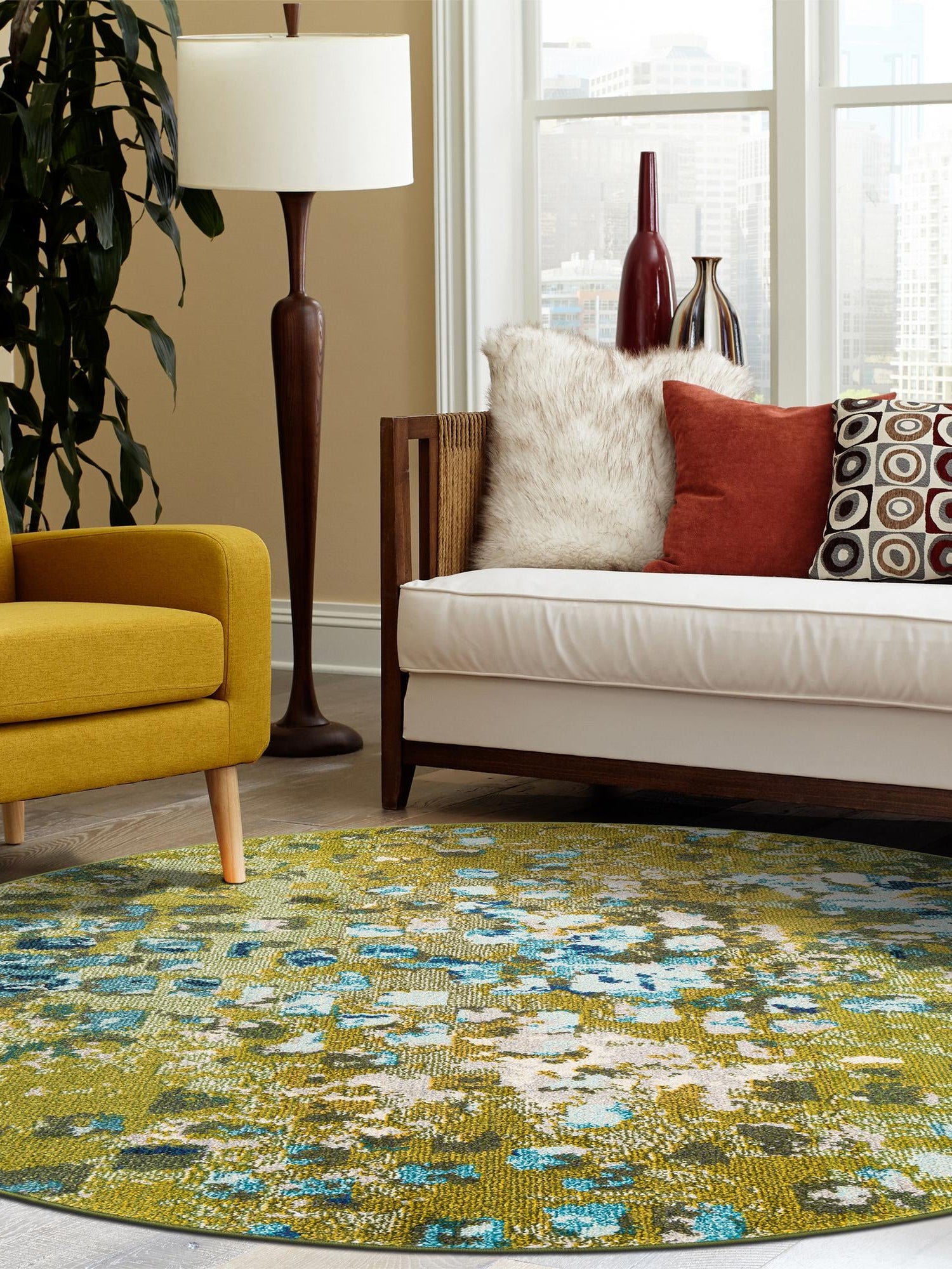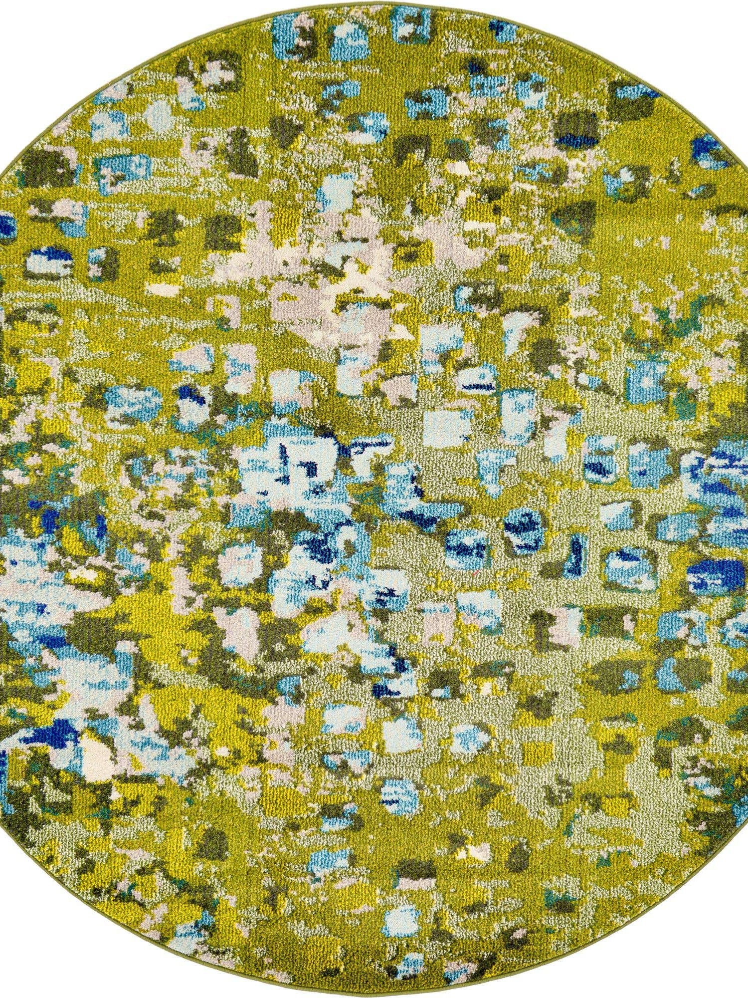 Green 6' 1 x 6' 1 Jardin Round Area Rug 100% Polypropylene With Cotton Backing Colorful & Vivid Modern Carpet for Home Decor