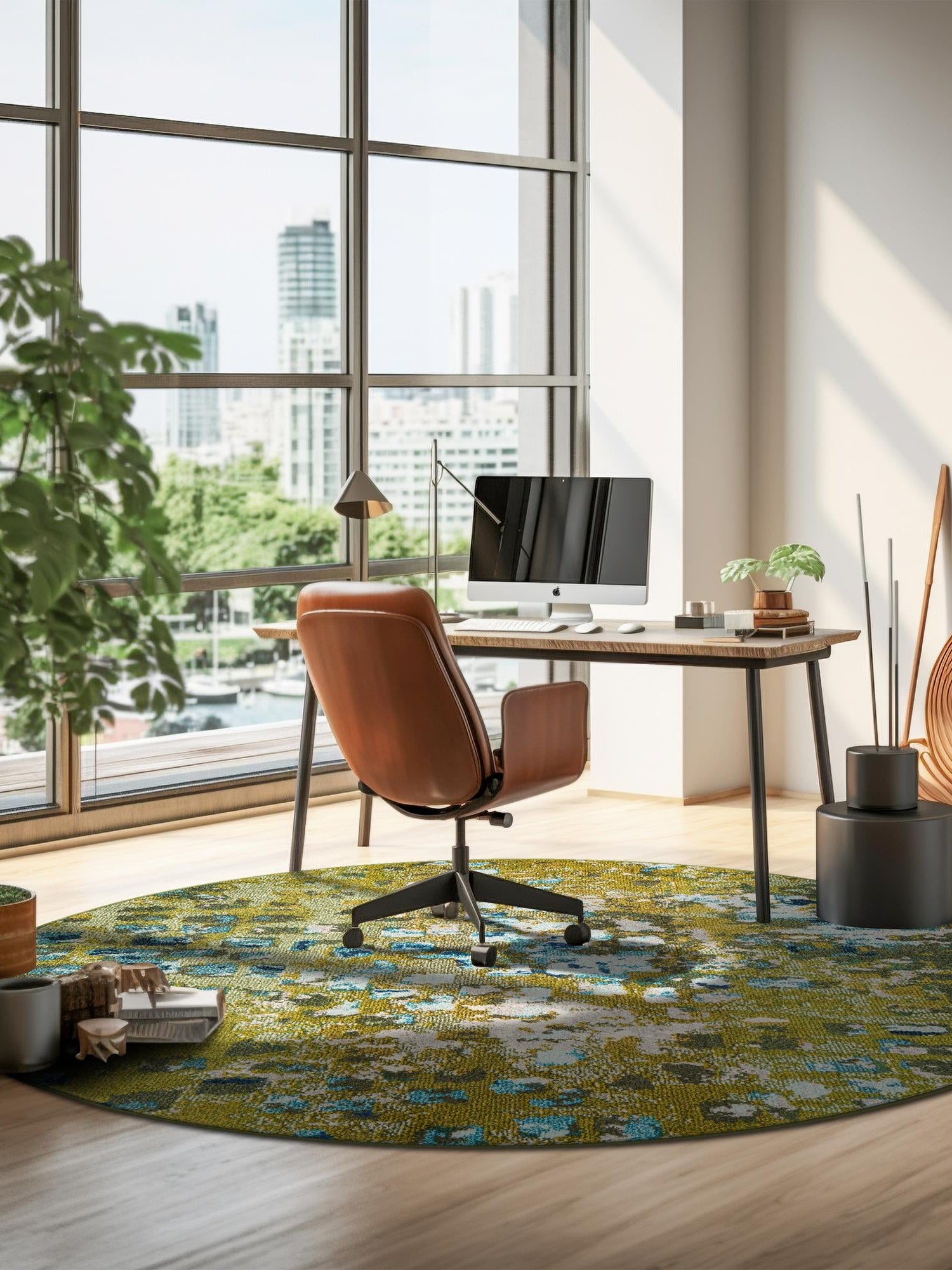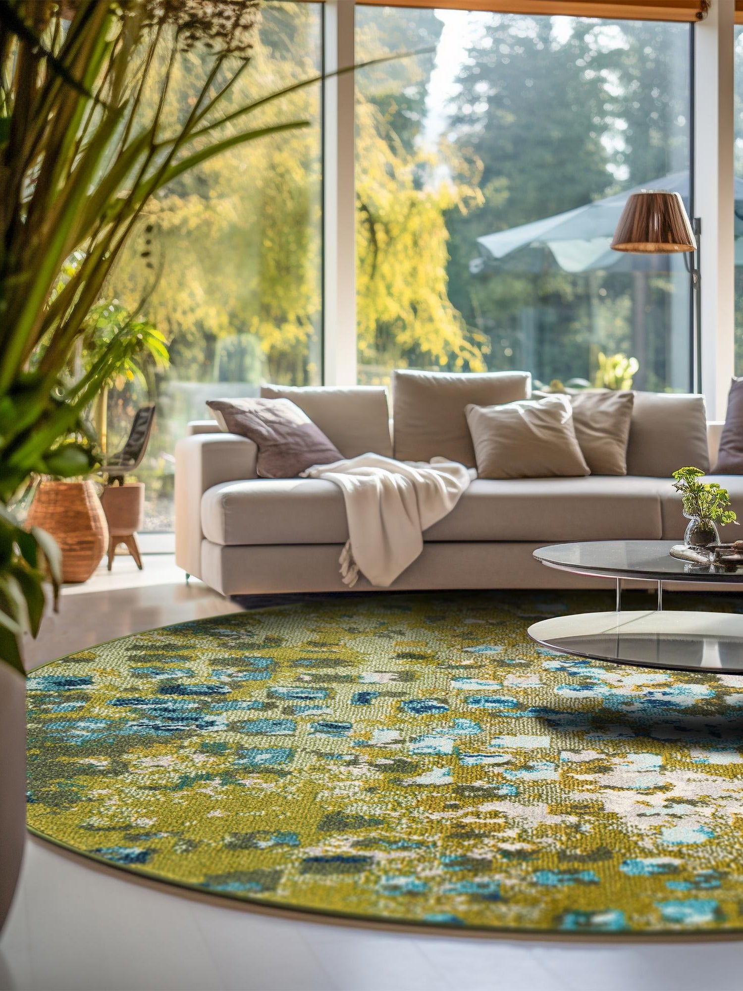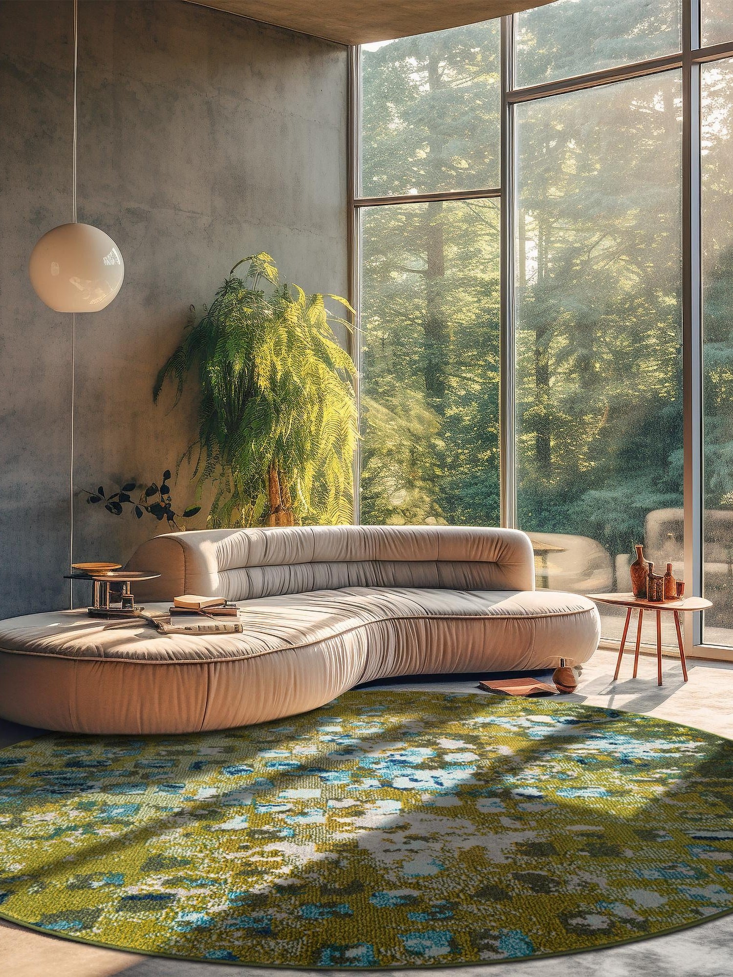 Green 6' 1 x 6' 1 Jardin Round Area Rug 100% Polypropylene With Cotton Backing Colorful & Vivid Modern Carpet for Home Decor