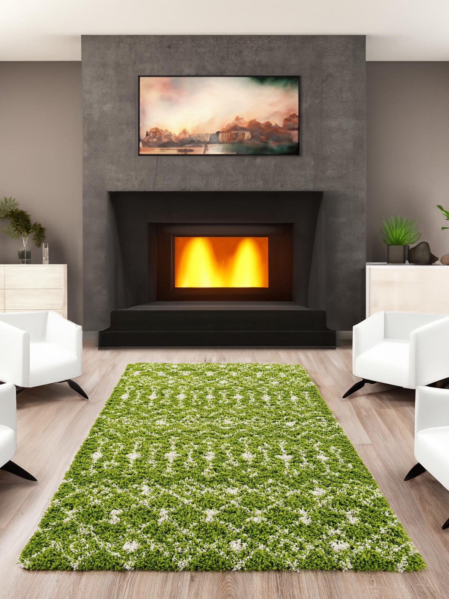 Green 7' 10 x 10' Moroccan Trellis Shag Rectangle Area Rug Thick Soft Touch Fluffy & Plush Shaggy Pile