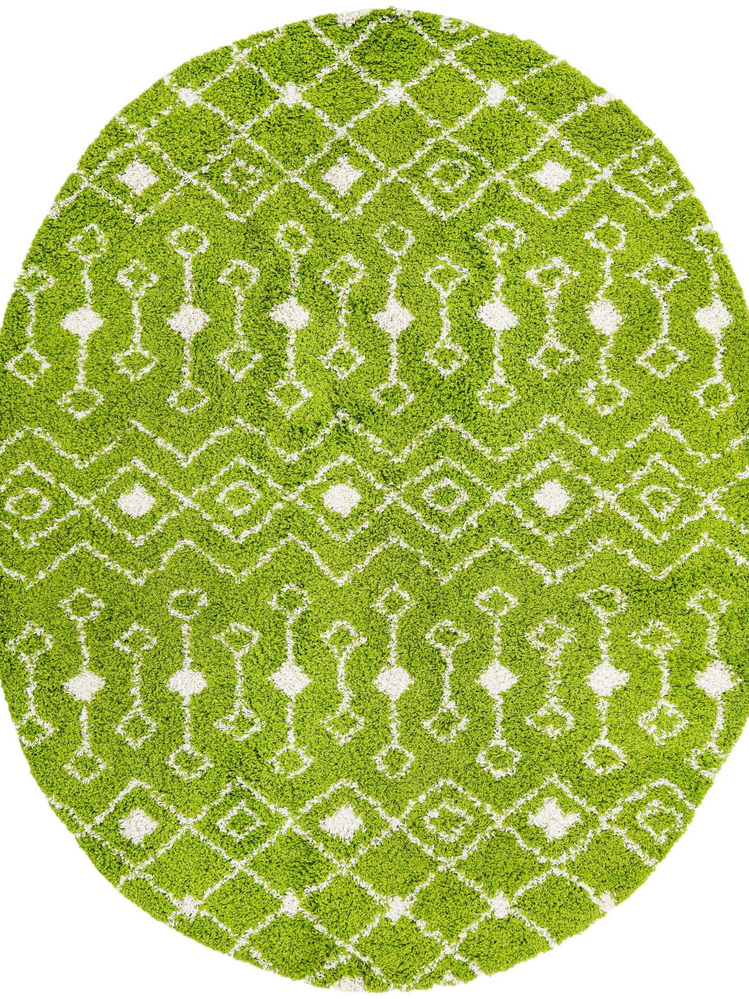 Green 7' 10 x 10' Moroccan Trellis Shag Oval Area Rug Thick Soft Touch Fluffy & Plush Shaggy Pile