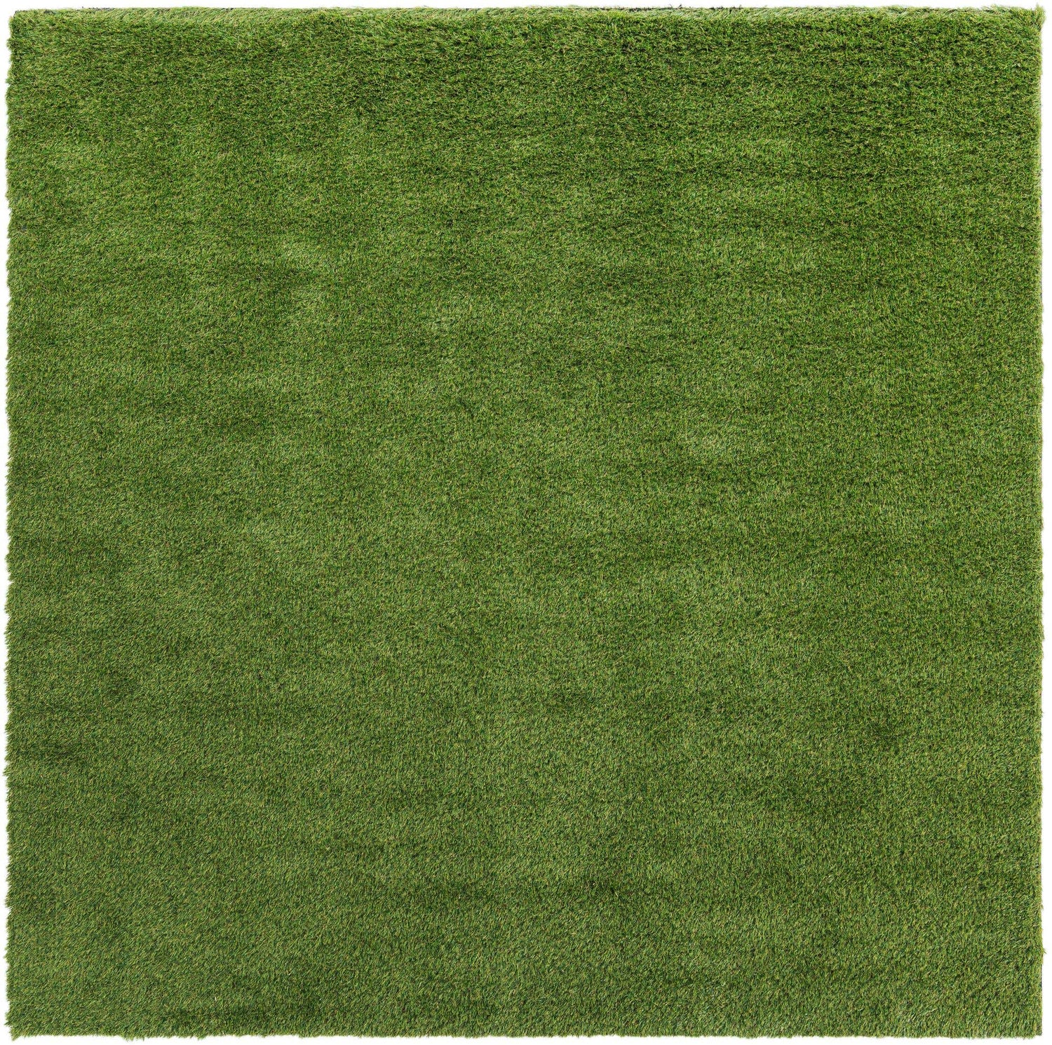 Green 7' 10 x 7' 10 Outdoor Grass Square Area Rug Thick Soft Touch Fluffy & Plush Shaggy Pile Weather Resistant for Patio, Deck, Terrace, Balcony, Porch