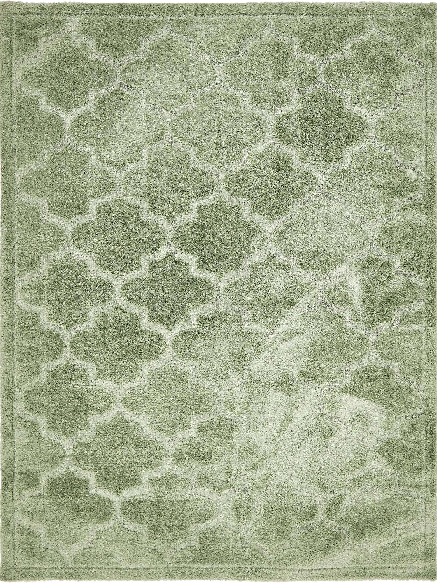 Green 9' x 12' 2 Trellis Shag Rectangle Area Rug Thick Soft Touch Fluffy & Plush Shaggy Pile