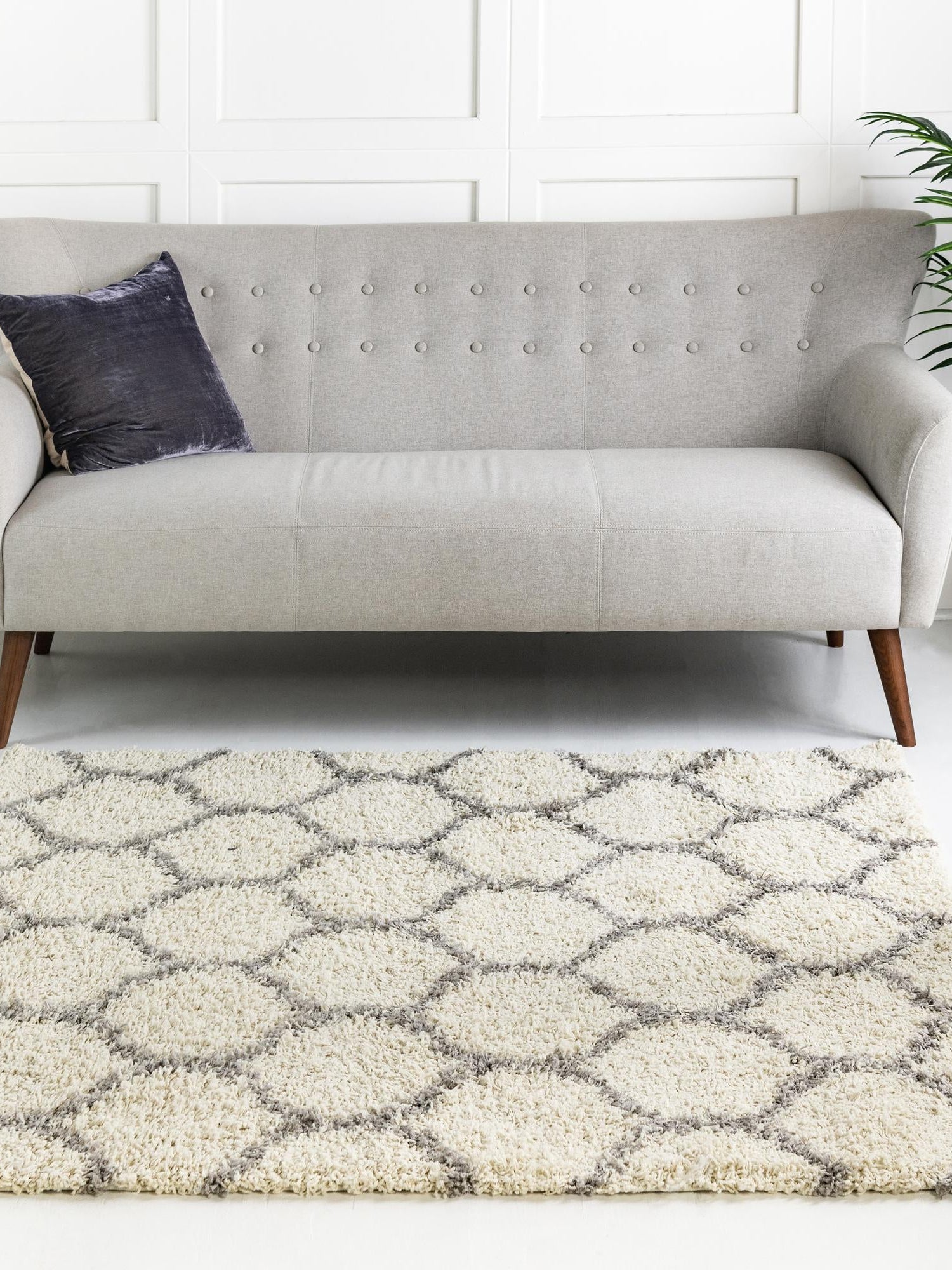 Ivory 10' x 10' Trellis Shag Square Area Rug Thick Soft Touch Fluffy & Plush Shaggy Pile