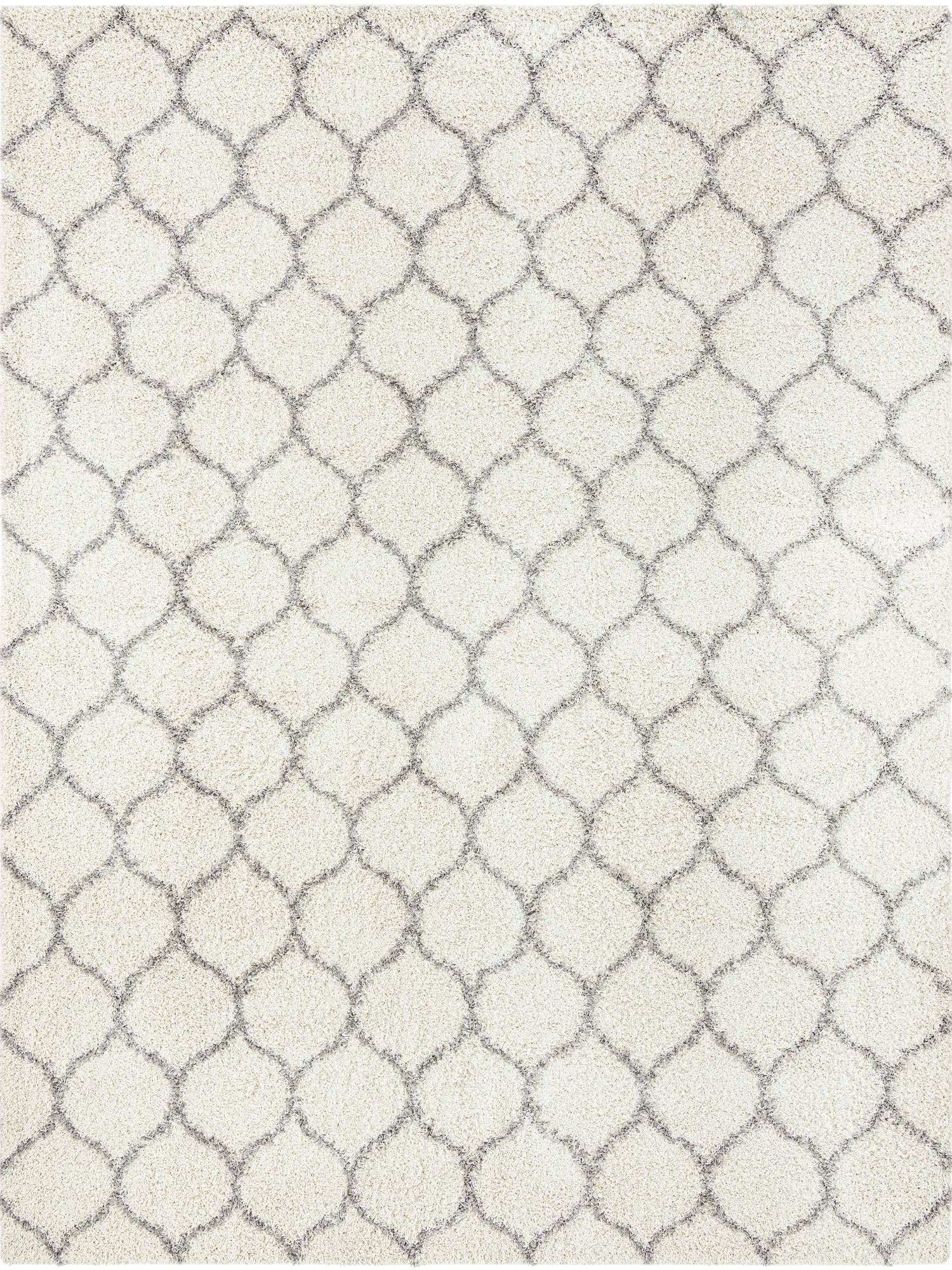Ivory 10' x 13' Trellis Shag Rectangle Area Rug Thick Soft Touch Fluffy & Plush Shaggy Pile